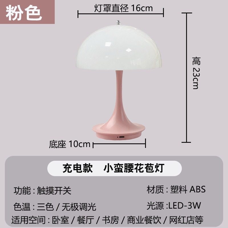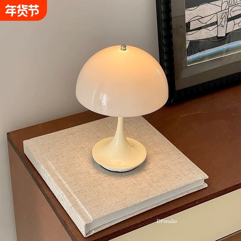 无线台灯卧室夜水母充电风灯韩床头灯小夜灯法式奶油客厅家居照明