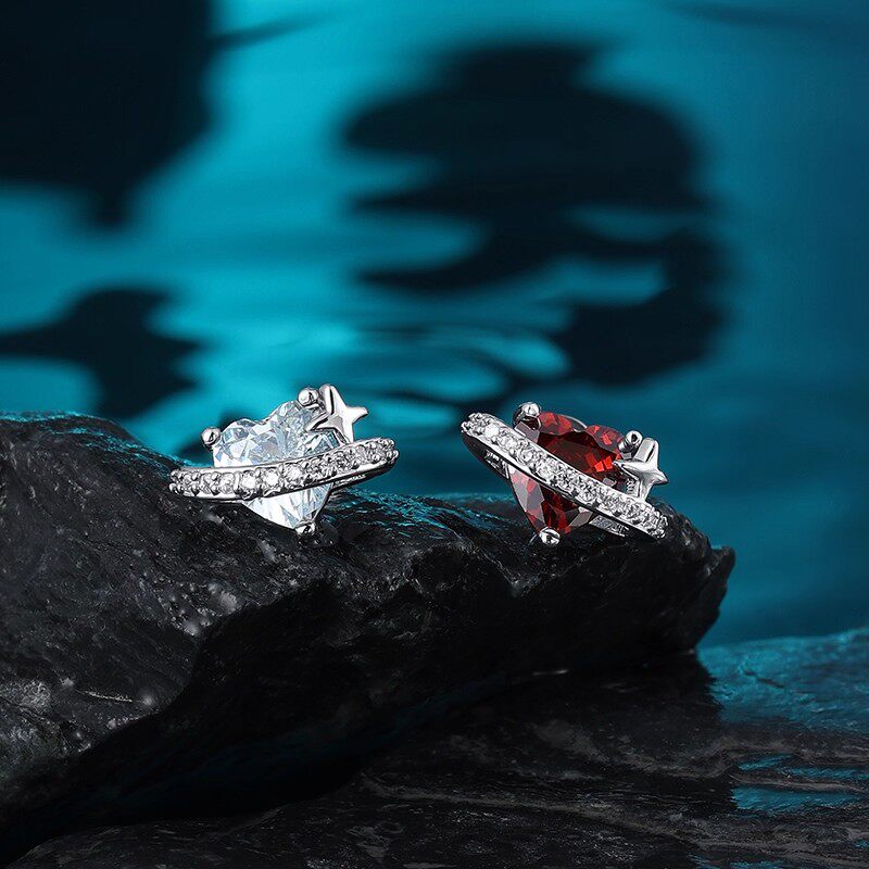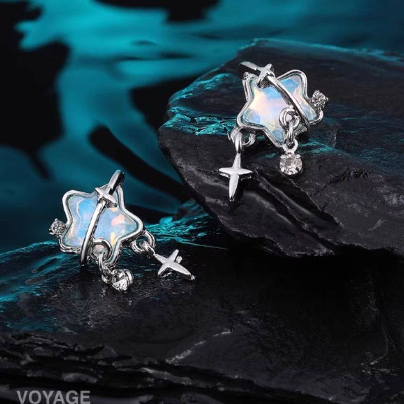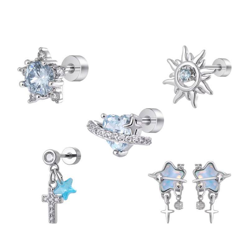 蓝色土星爱心耳钉女款星芒耳环钛钢耳坠耳骨钉耳蜗钉秋冬耳饰男款