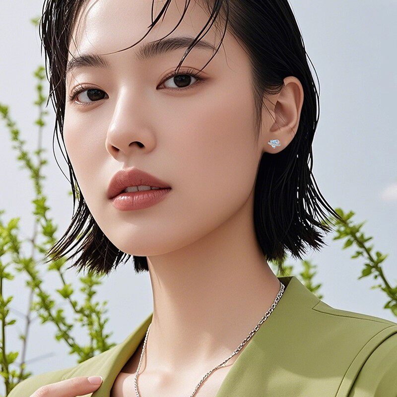 999纯银耳钉女养耳洞耳骨钉小众高级感锆石耳蜗钉水钻耳环银耳饰