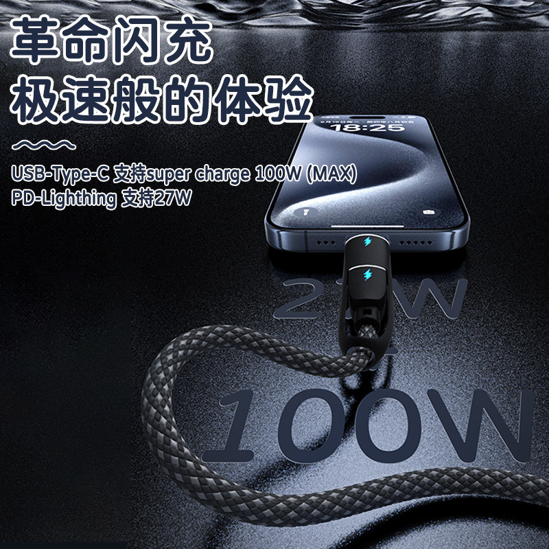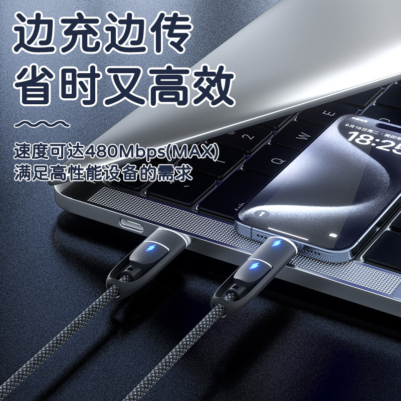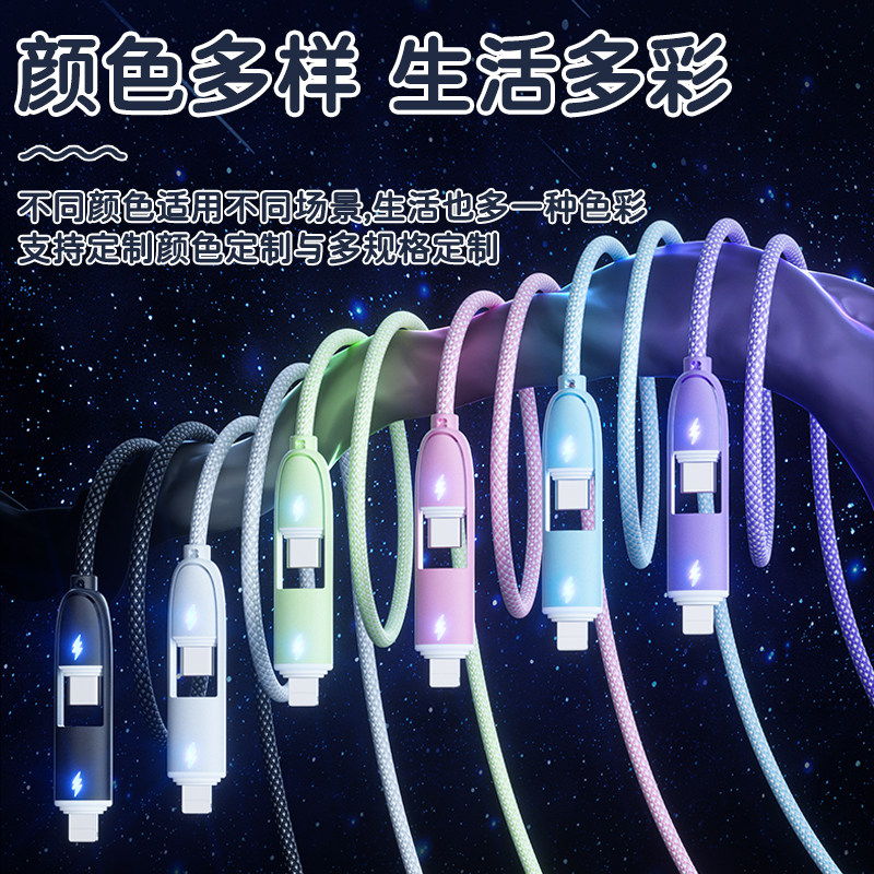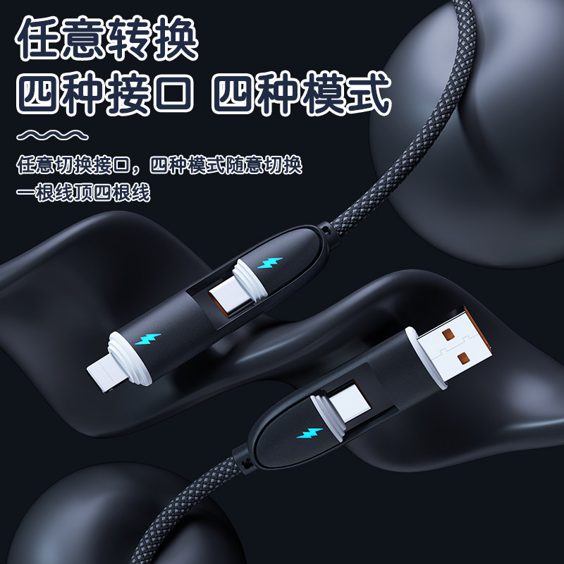 66w四合一数据线适用苹果15快充PD27w华为荣耀OPPOvivo小米超级快充双type-c二拖二充电线