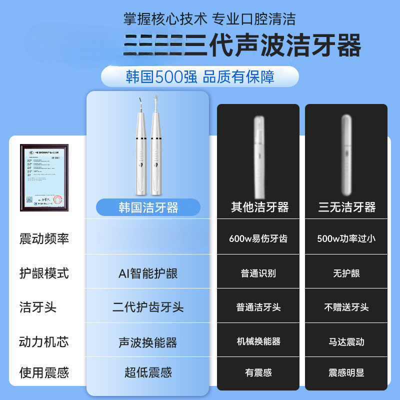 HYUNDAI现代家用牙渍牙齿超声频率波洁牙器去牙结石去除器洗牙器