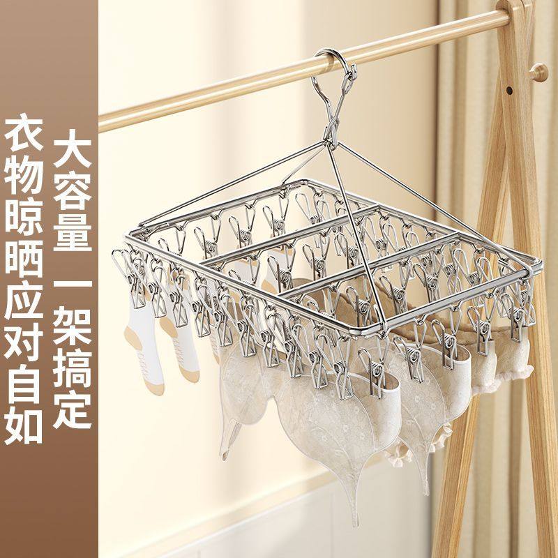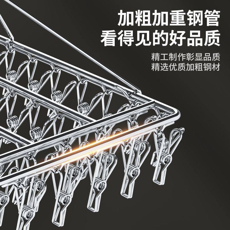 特粗晾袜子衣架多夹子防风家用不锈钢晾衣夹多功能挂钩晒袜子神器