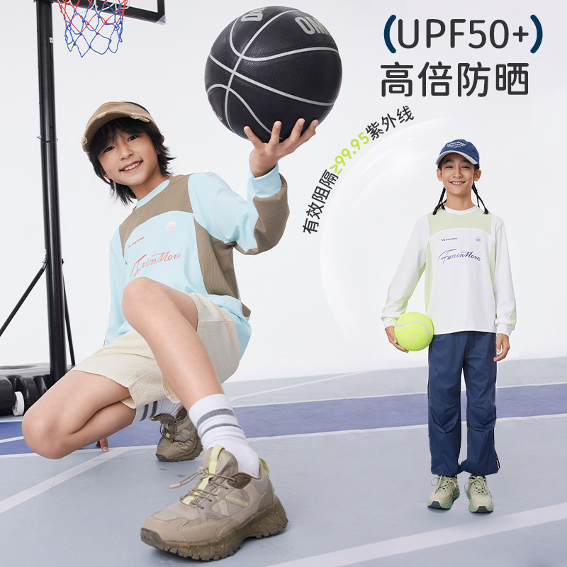 特步童装男童速干长袖T恤2025秋冬新款儿童防晒上衣中大童运动长t