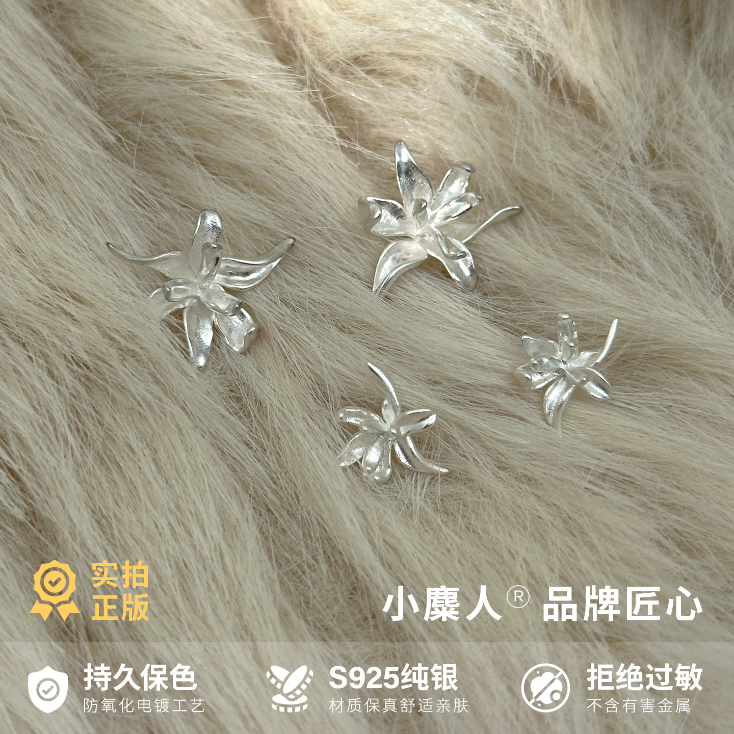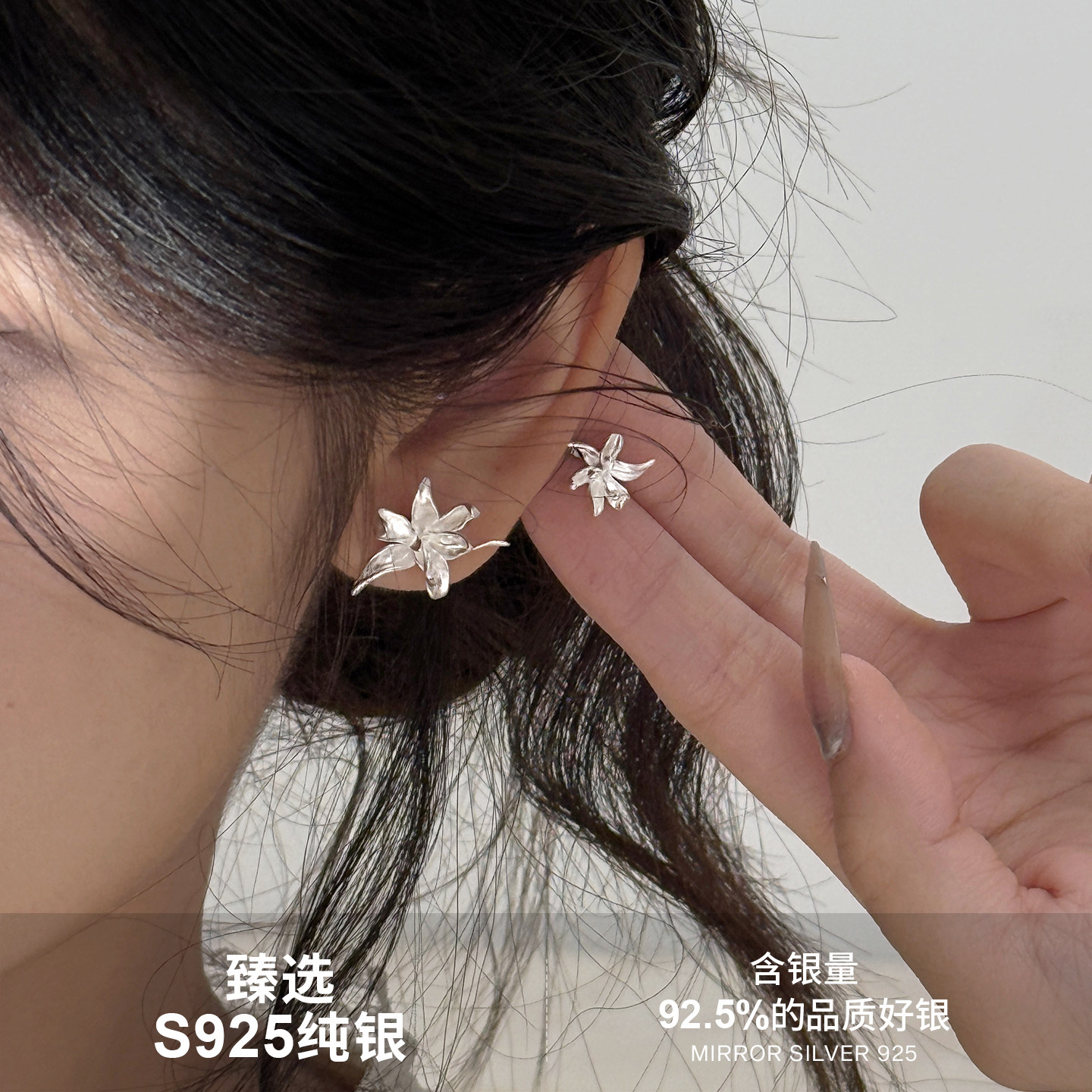 小麋人925纯银鸢尾花耳钉女耳环耳饰小众设计轻奢2025年新款潮