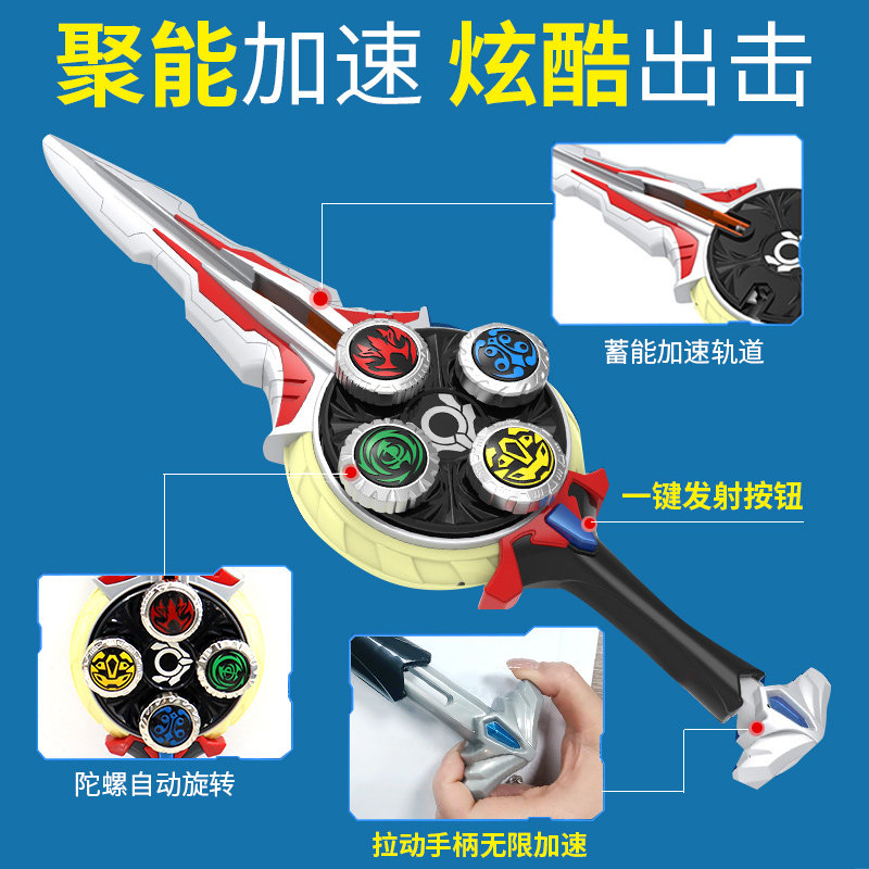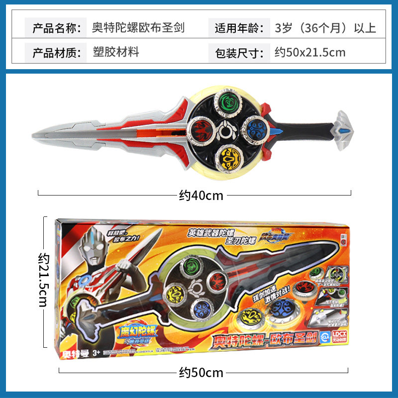 灵动创想新款奥特曼陀螺儿童欧布圣剑男孩战斗宝剑旋转坨螺剑玩具