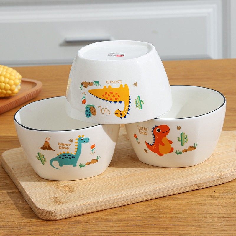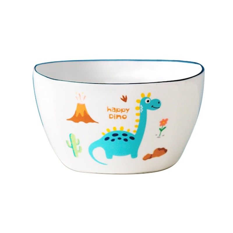 创意卡通可爱萌宠恐龙饭碗餐盘组合套装家用高颜值陶瓷方形碗菜盘