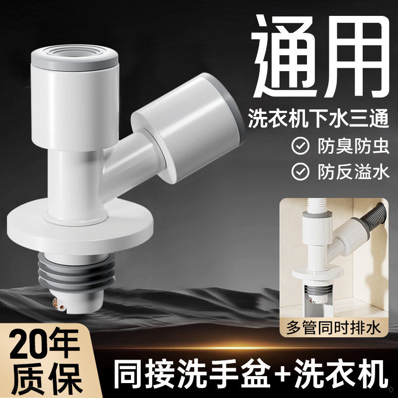 洗衣机下水止逆阀防反水下水管三头通地漏二合一排水管防溢水接头