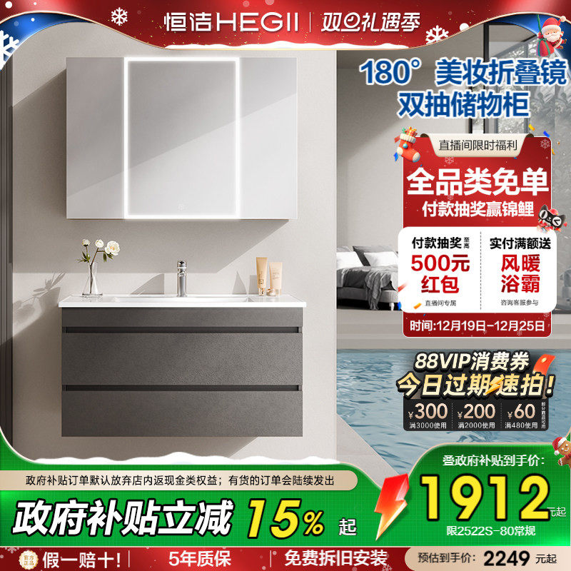 恒洁卫浴浴室柜组合卫生间洗手洗脸盆柜洗漱台一体盆抽屉卫浴柜