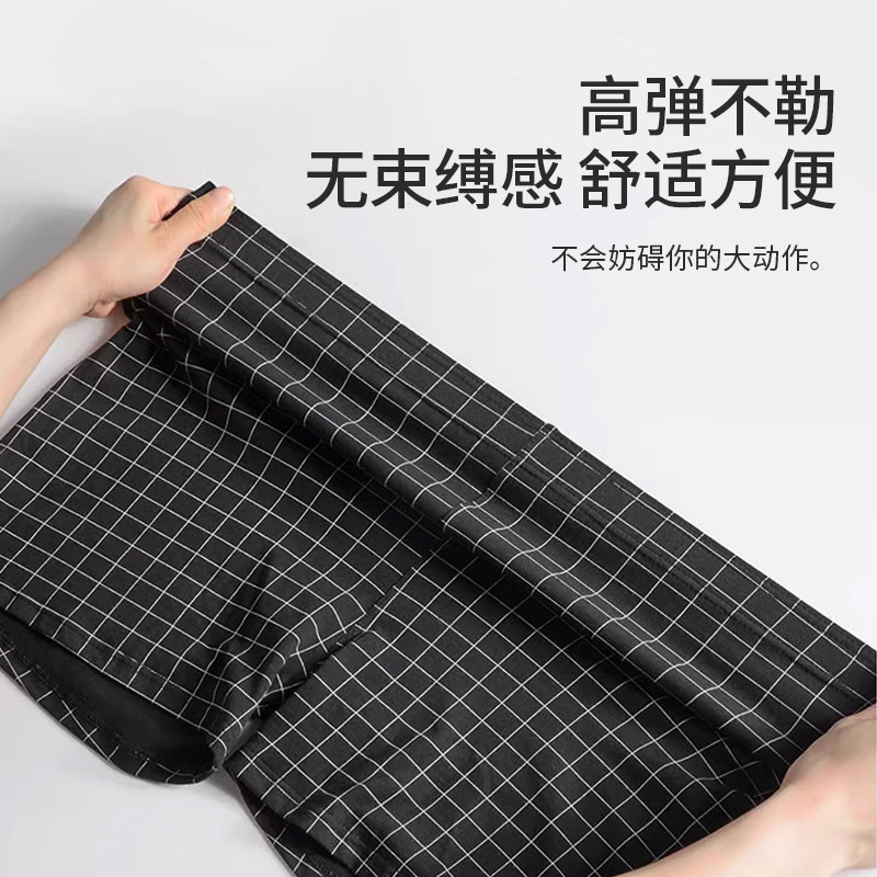 雅鹿纯棉男士内裤四角短裤衩男生阿罗裤透气大码2025新款格子加长