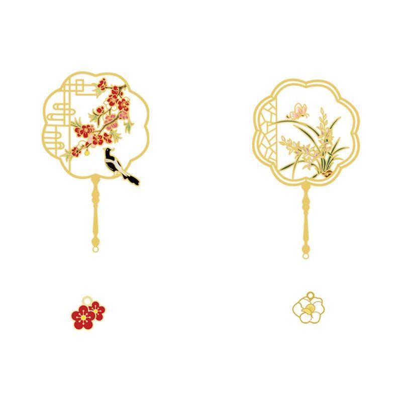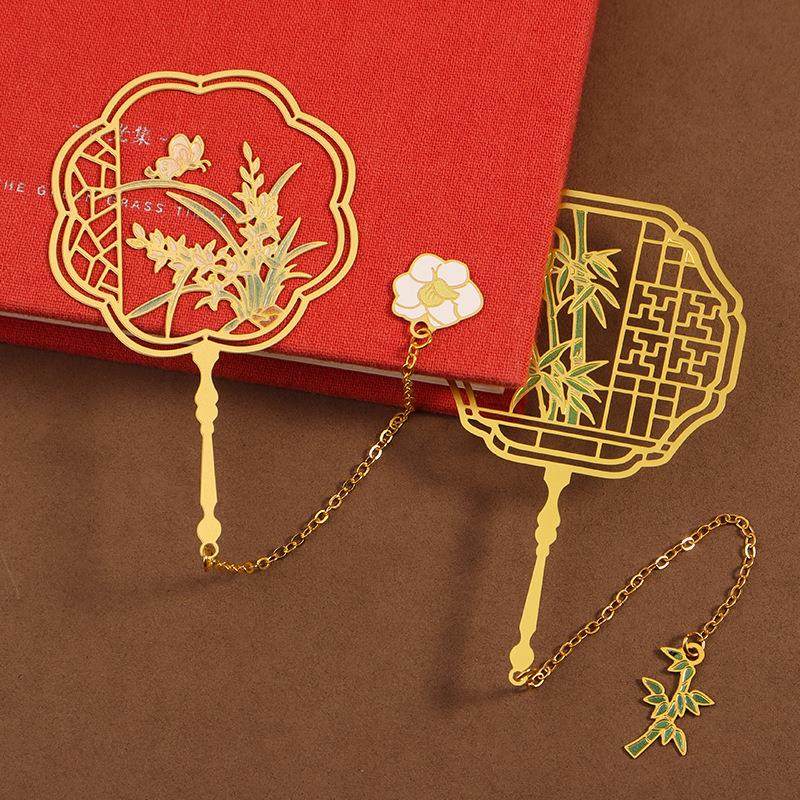 中式金属书签中国风黄铜镂空团扇书签精美学生礼品不锈钢书签
