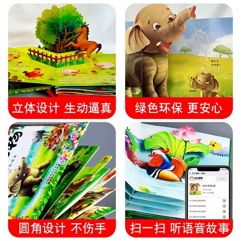动物立体书全套4册3d早教认知情景翻翻书0到3岁婴幼儿启蒙认知早教3d立体故事机关书适合幼儿1-2岁宝宝看的看图认物课外阅读书