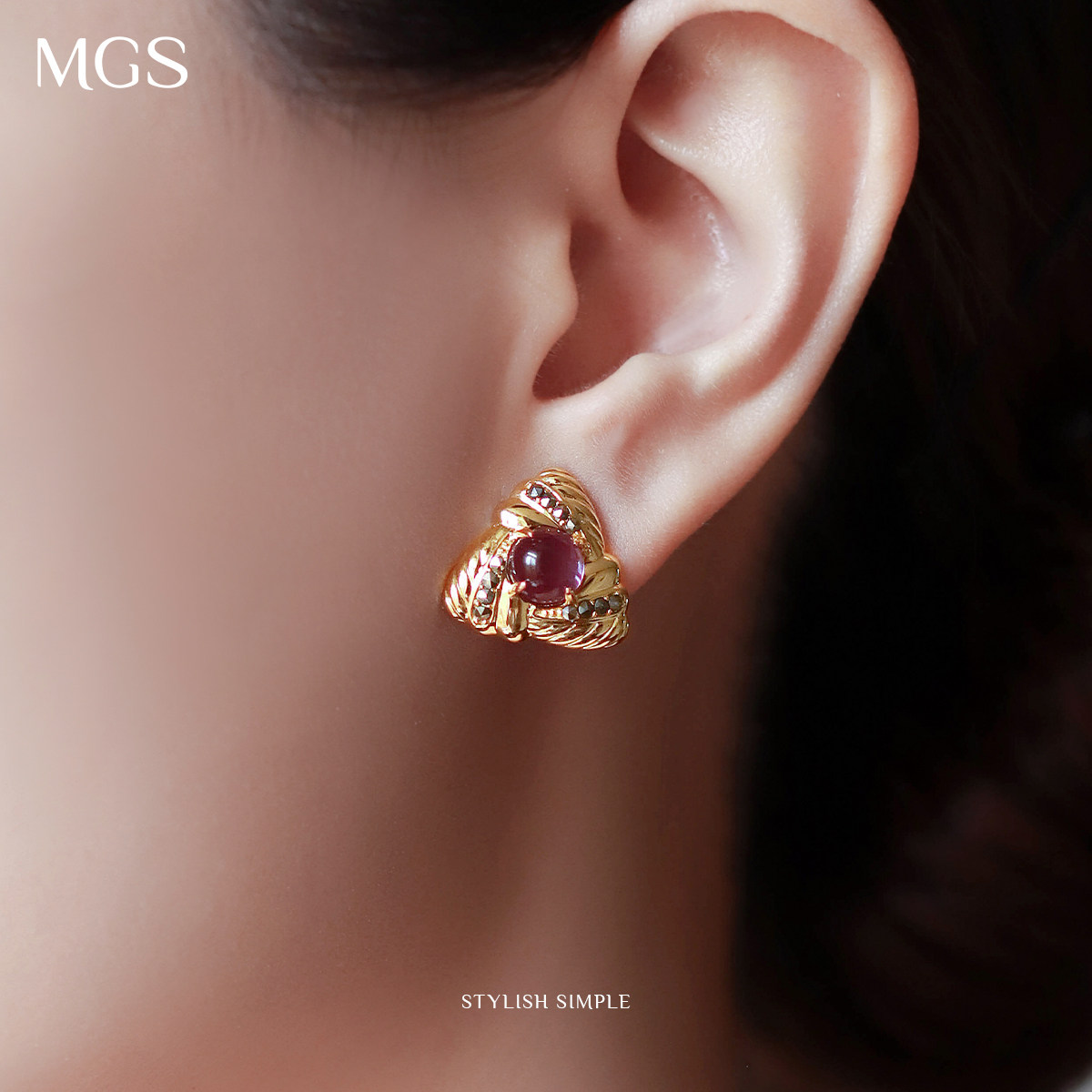 MGS/曼古银三生万物紫水晶耳钉925纯银耳环时尚耳饰闺蜜女友礼物