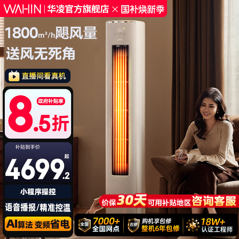 华凌空调神机二代3匹家用柜机一级72客厅立式智能超省电双排铜管