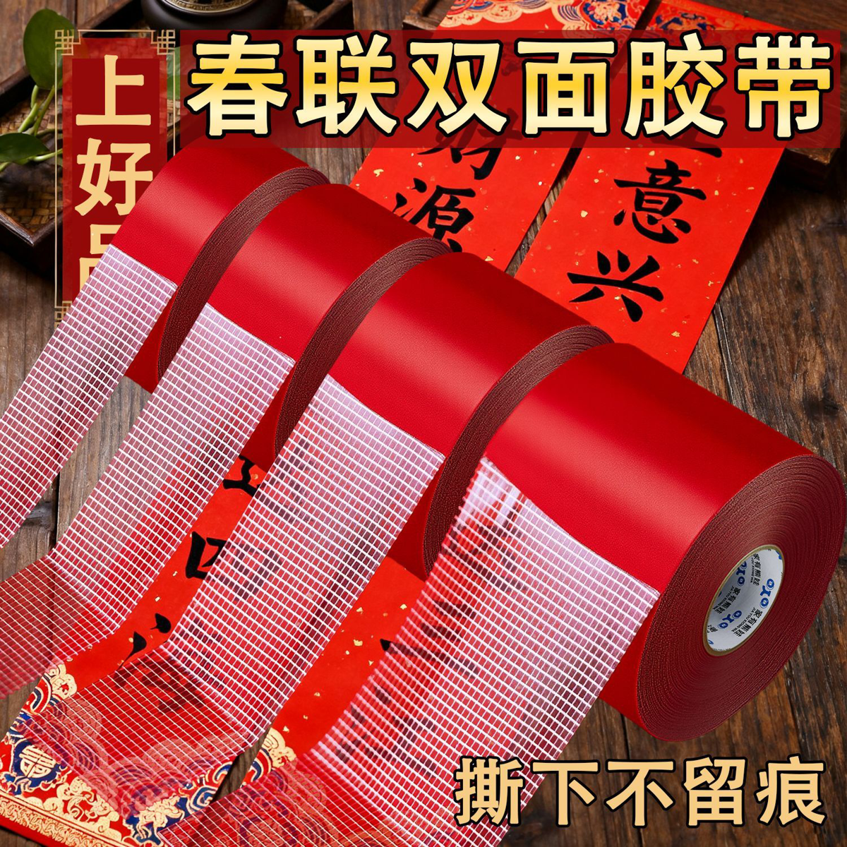 不易留胶】贴春联对联用双面胶无痕强力婚车婚房喜贴福贴易撕胶带