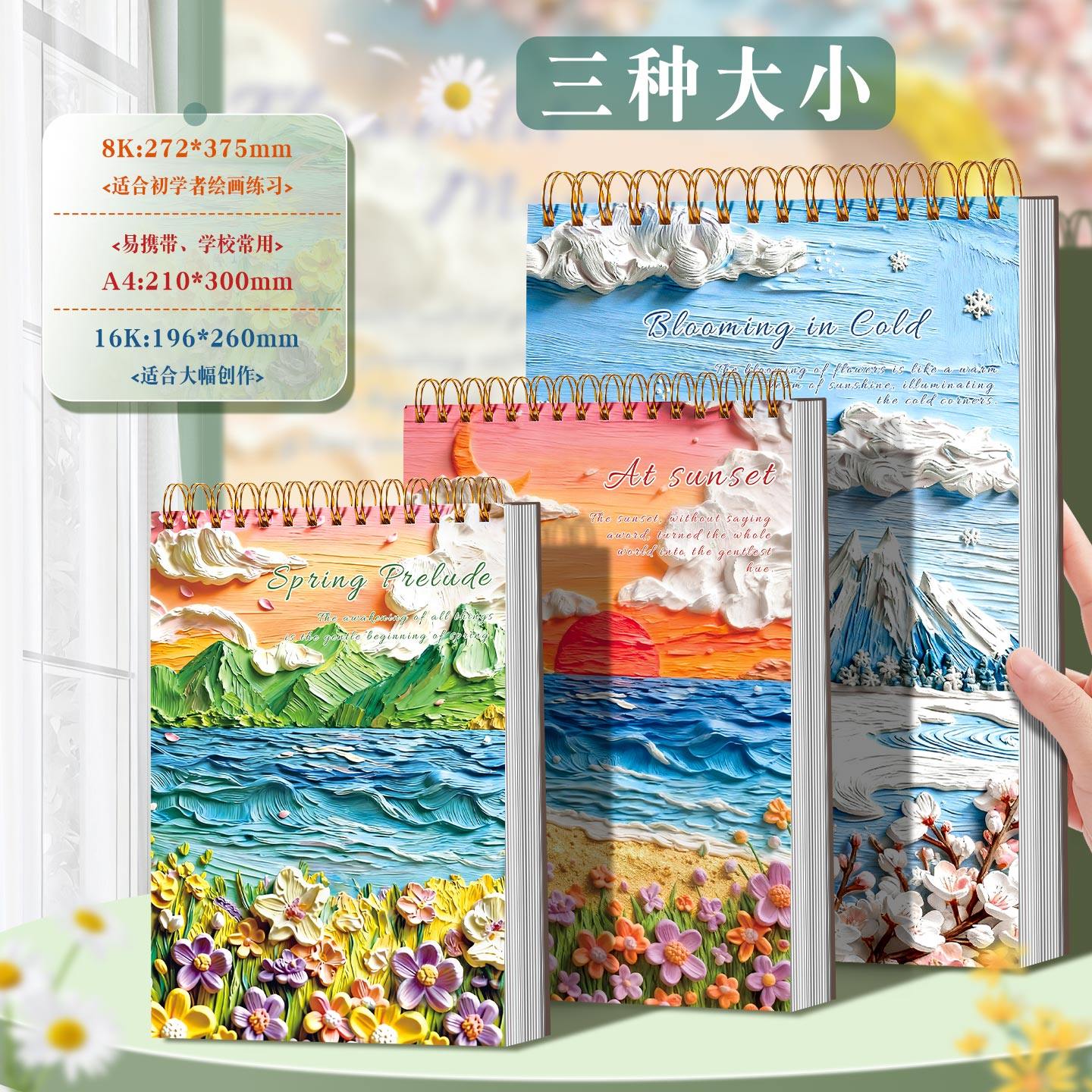 素描本加厚160g美术生绘画写生速写本8K空白图画本学生手绘涂鸦专用16K线圈马克本高颜值水彩本油画风画画本