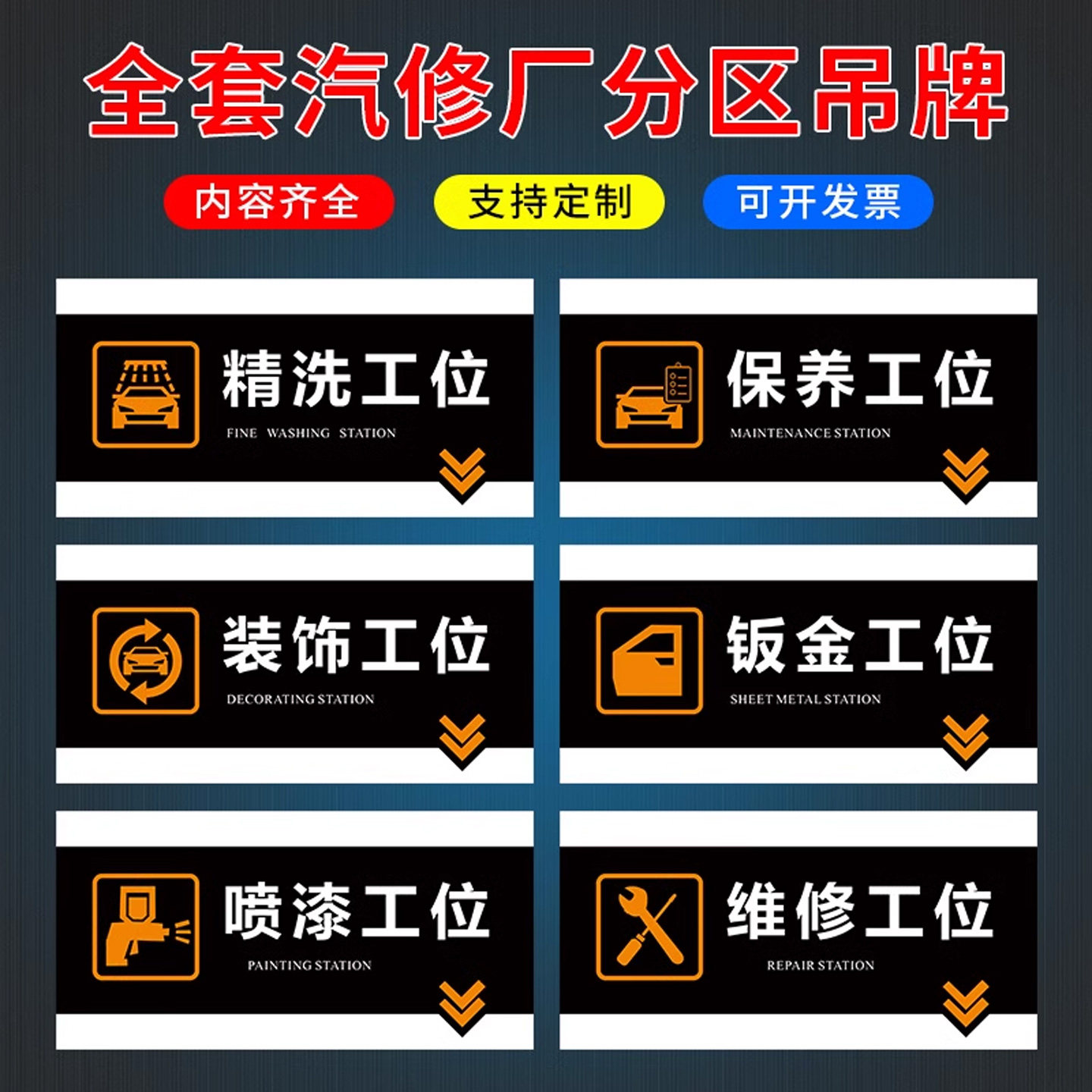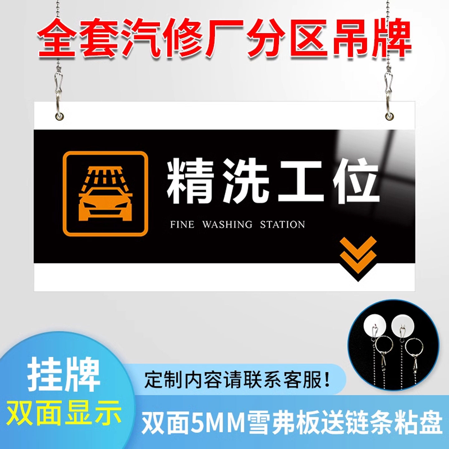 汽修厂汽车养护分区吊牌挂牌标识牌4s店汽车保养洗车精洗工位维修工位美容配件工位吊牌指示区域牌提示牌定制