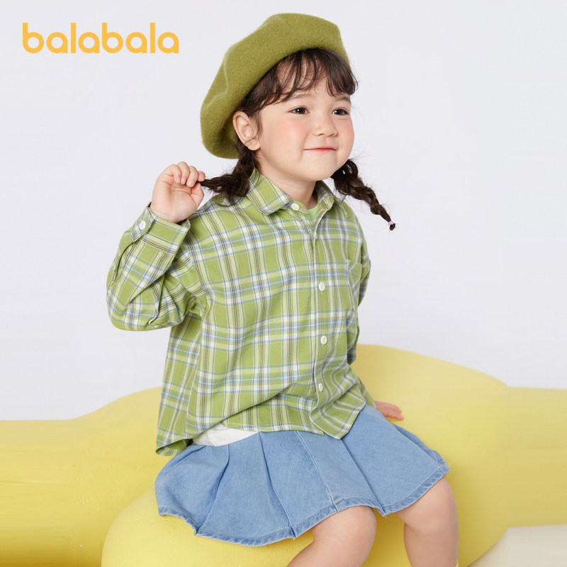 巴拉巴拉童装儿童长袖衬衫男童女童格纹上衣春秋亲子装学院风百搭