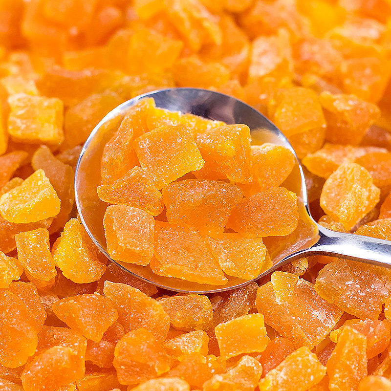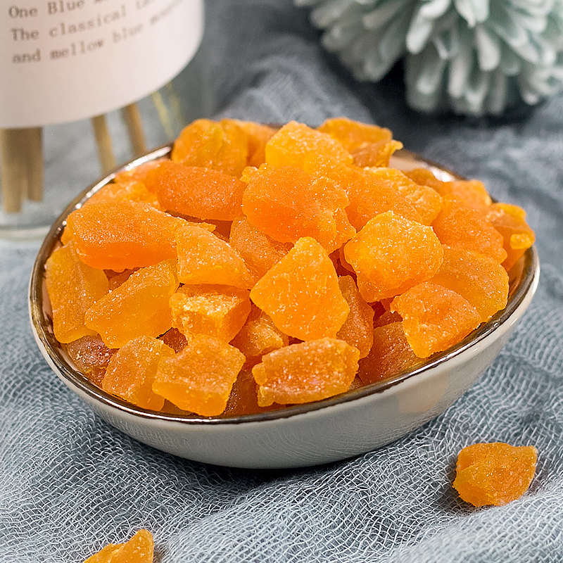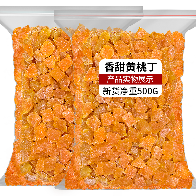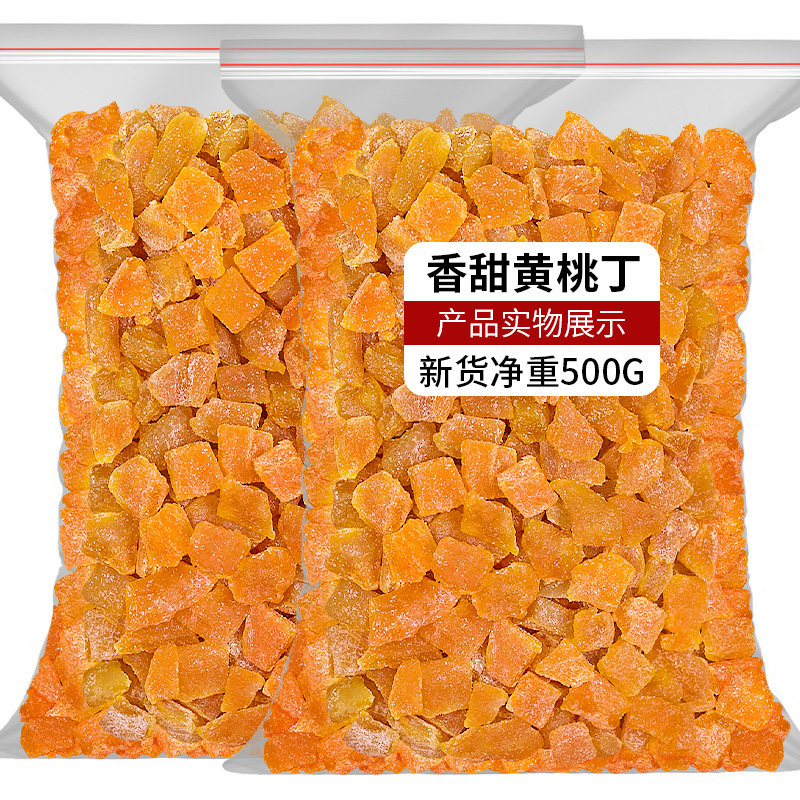 果脯黄桃干散装黄桃丁碎碎粒净重500g休闲零食水果干蜜饯桃脯装饰