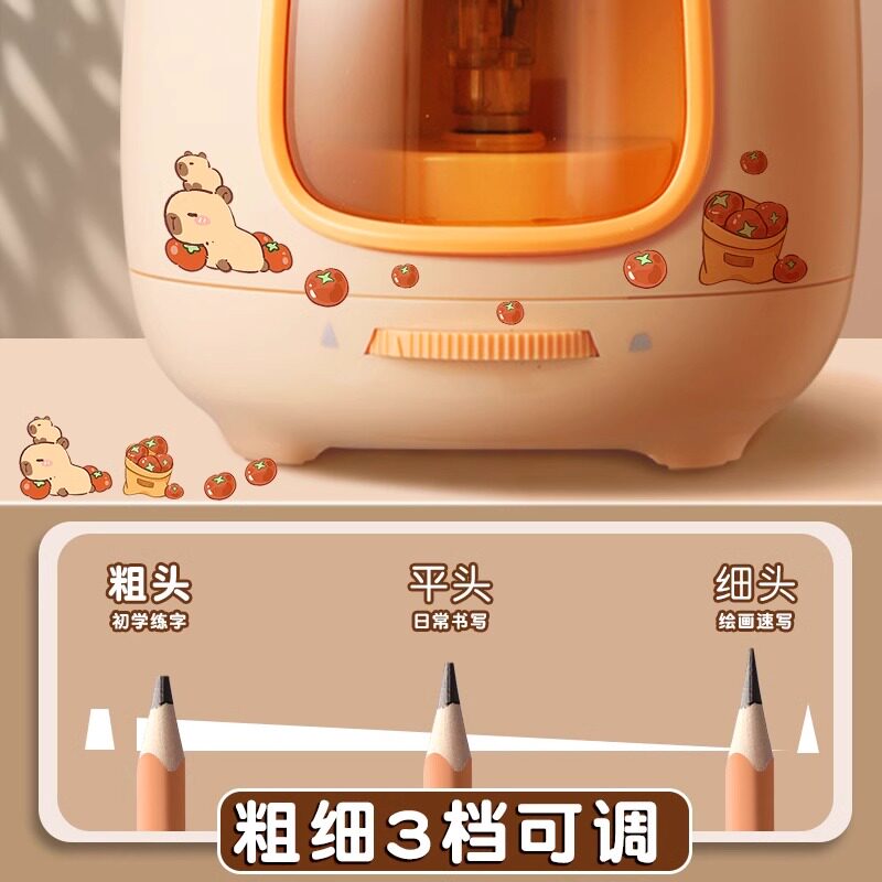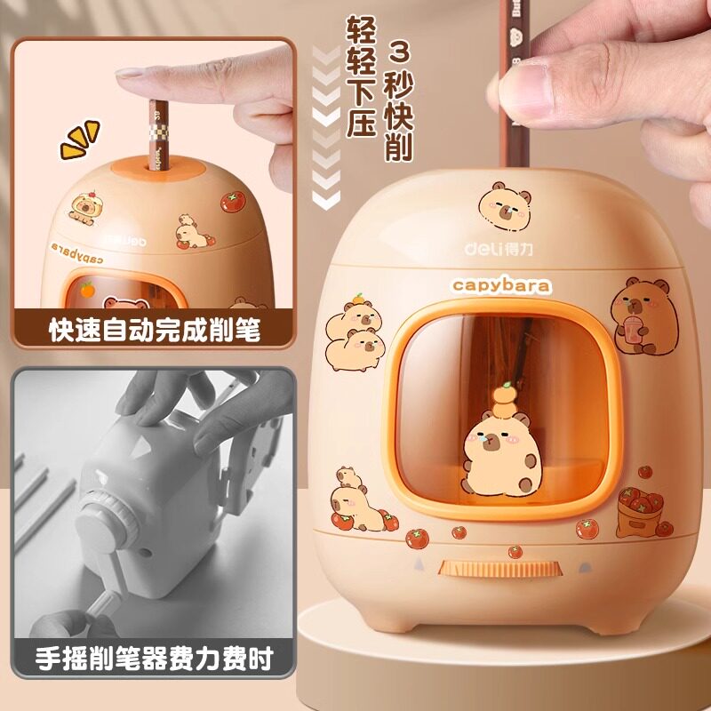得力卡皮巴拉卷笔刀自动削笔机电动削笔器小学生专用铅笔转笔刀幼儿园儿童卡通可爱削笔刀双电源刨笔旋绞笔刀