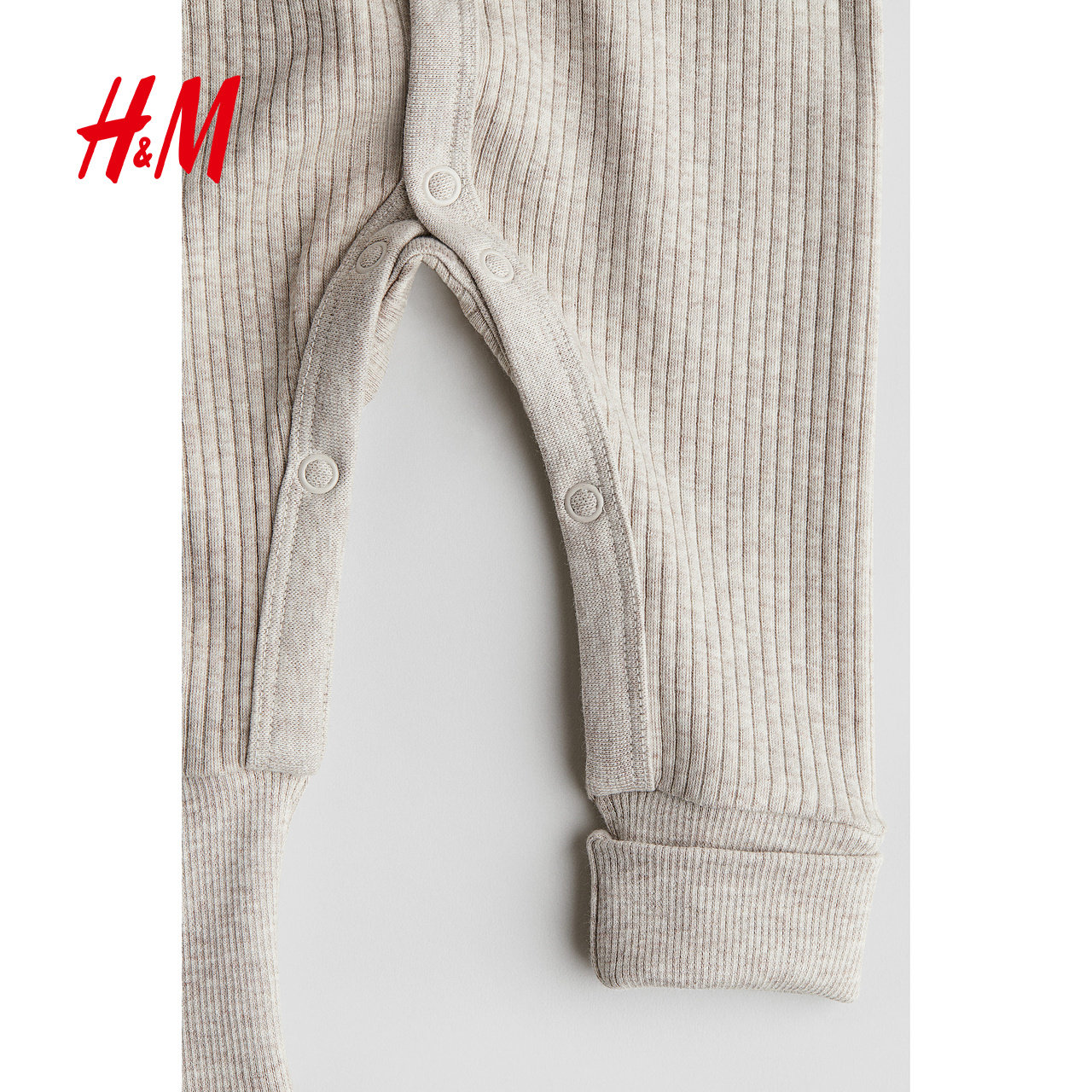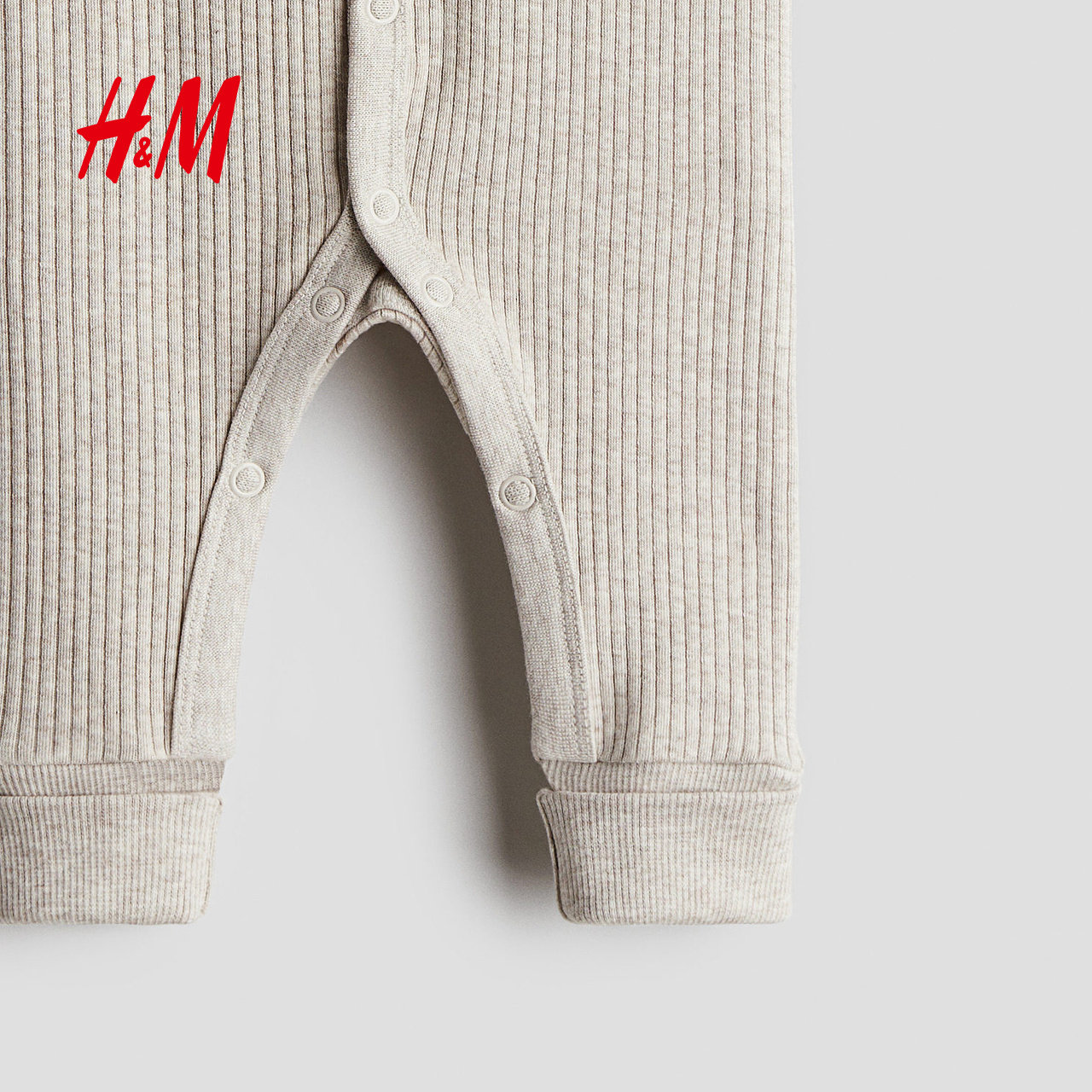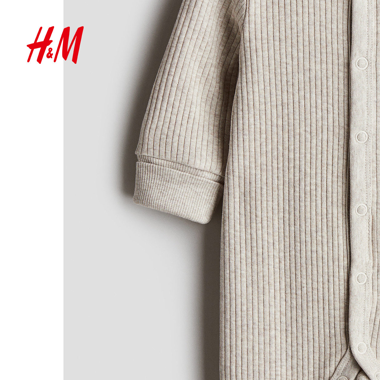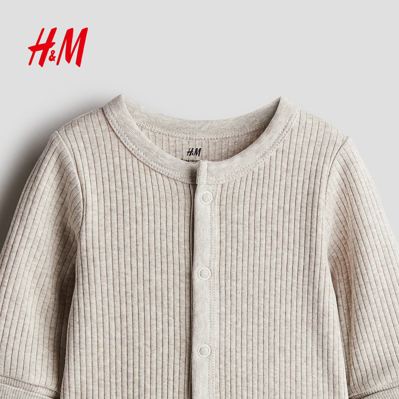 HM童装新生儿男婴女婴连身衣圆领长袖长裤外出罗纹连体衣1194079