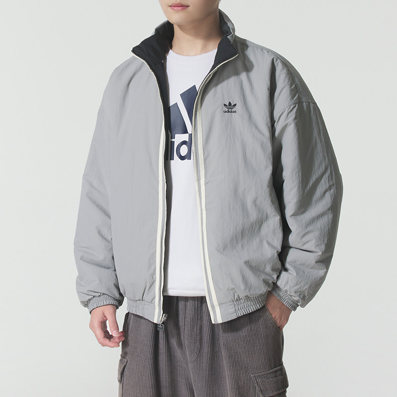 阿迪达斯三叶草两面穿棉服男装2025冬季新款运动外套宽松休闲夹克