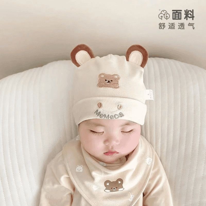 imomoto婴儿帽子春秋款新生儿护囟门帽小月龄秋冬季保暖男女宝宝