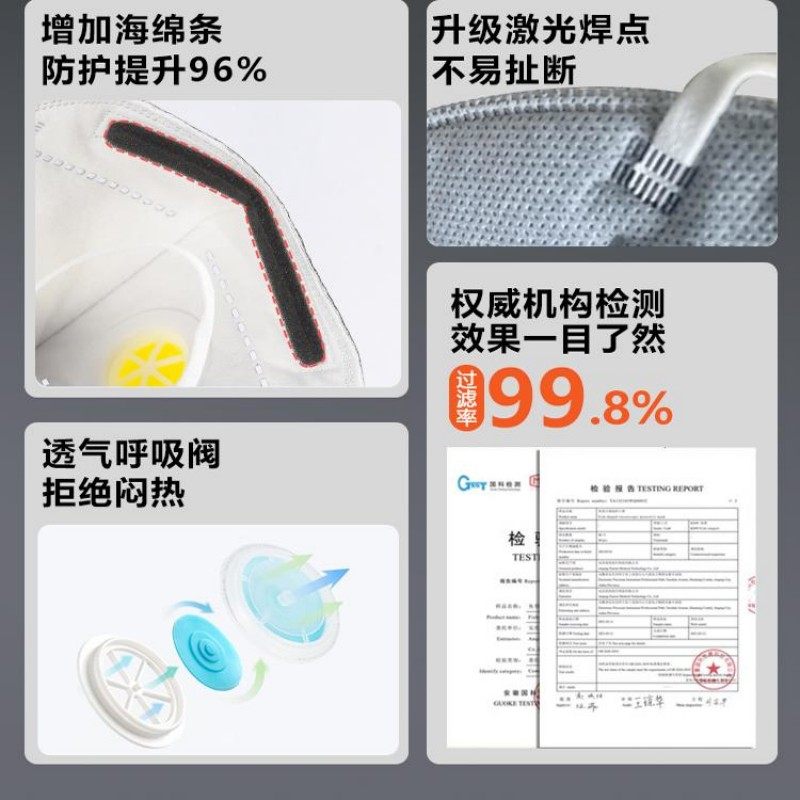 KN95口罩防尘透气易呼吸工业防护粉尘雾霾打磨活性炭带阀电焊口罩