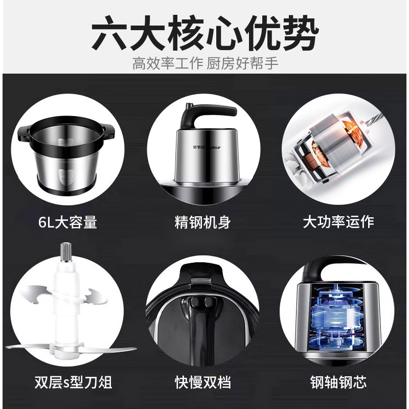 荣事达绞肉机商用家用电动不锈钢3/6L大容量多功能碎馅菜蒜料理机