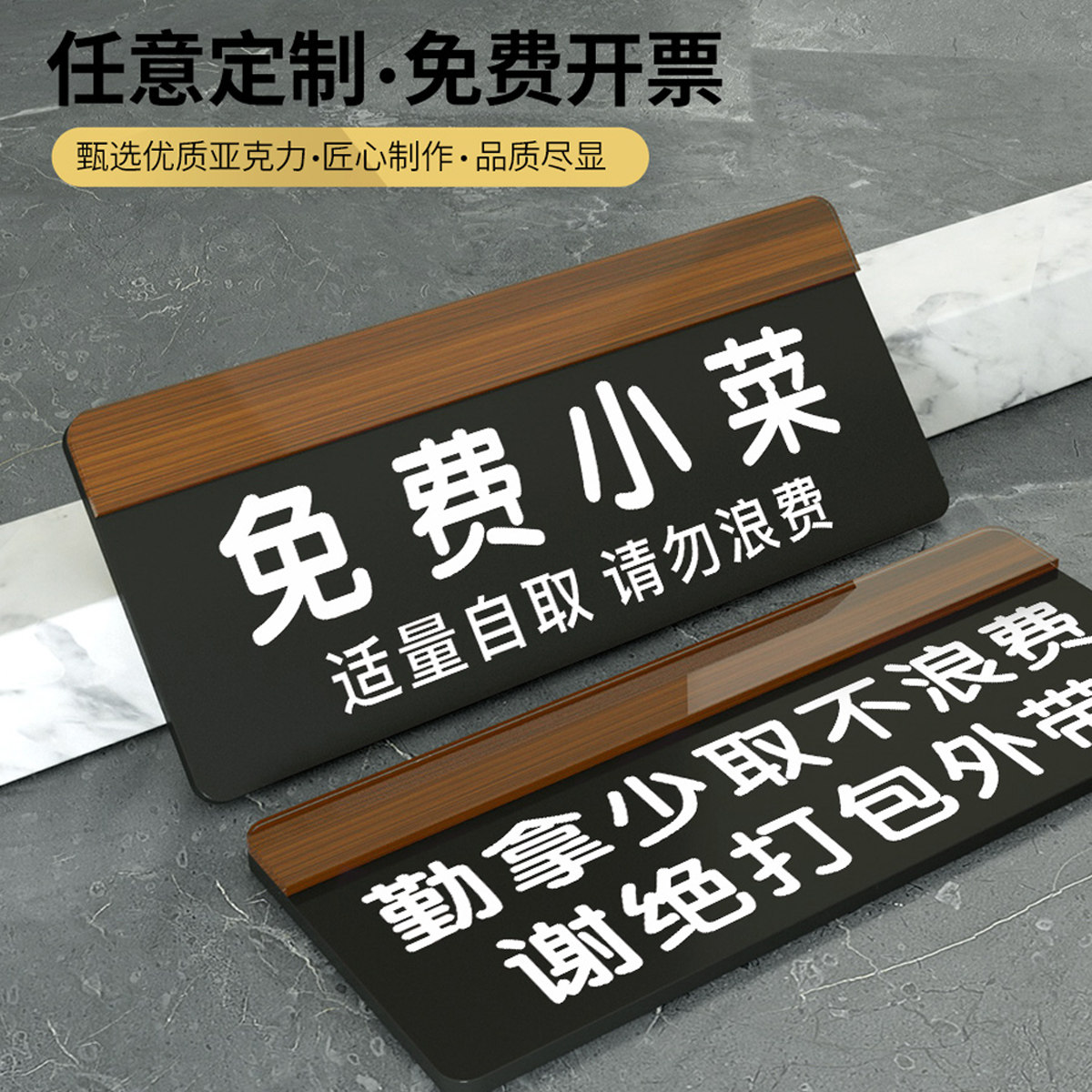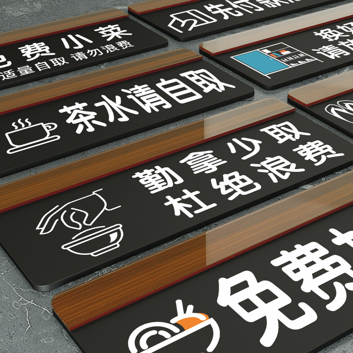 亚克力免费加饭勤拿少取杜绝浪费提示牌创意酒店餐厅自助调料区免费小菜标识贴饭店取餐口点餐口免费例汤标志