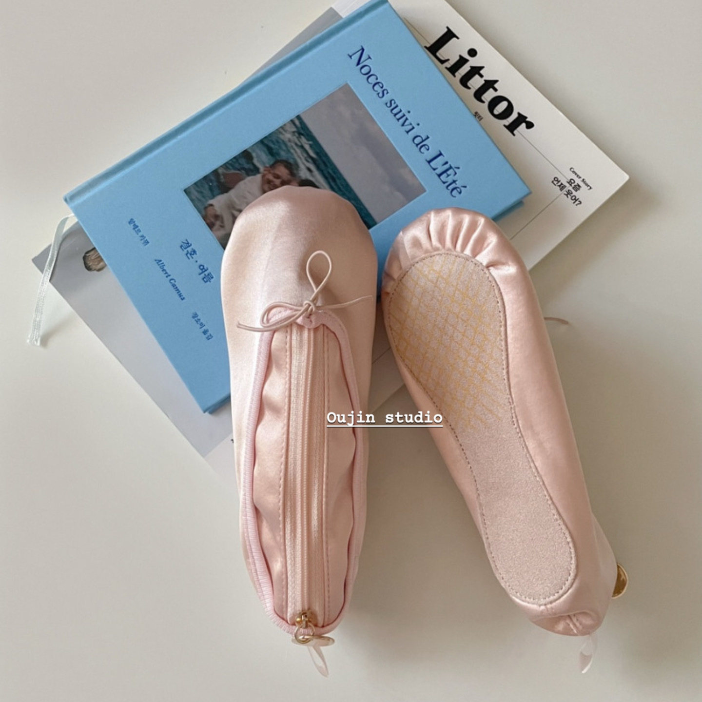 韩系ins风少女心粉色蝴蝶结笔袋芭蕾鞋化妆包学生文具桌面收纳袋