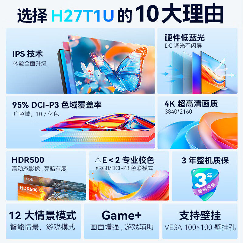 泰坦军团4K显示器27英寸办公家用H27T1U屏幕设计剪辑IPS电脑台式
