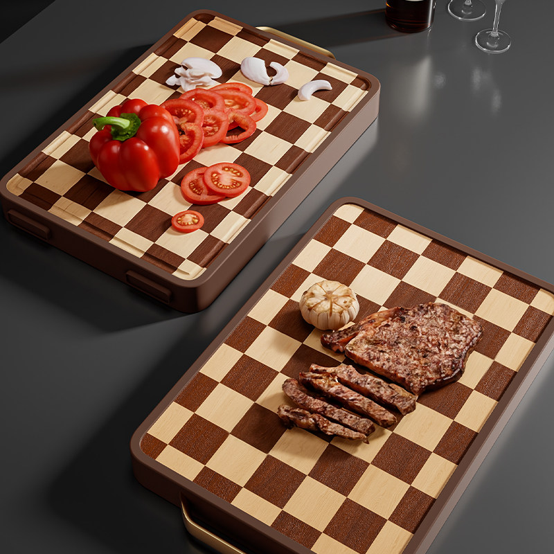 棋盘格乌檀木菜板防霉抗菌家用切菜板实木粘砧板双面案板厨房专用