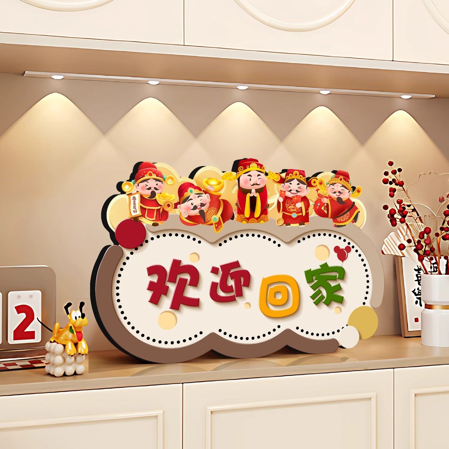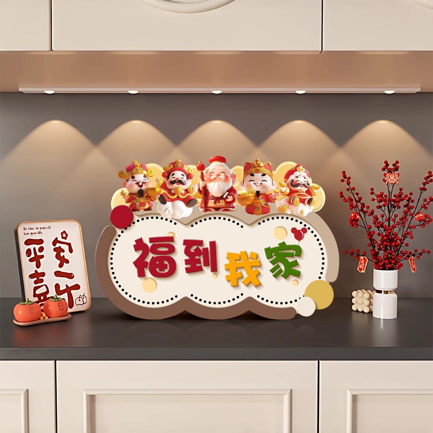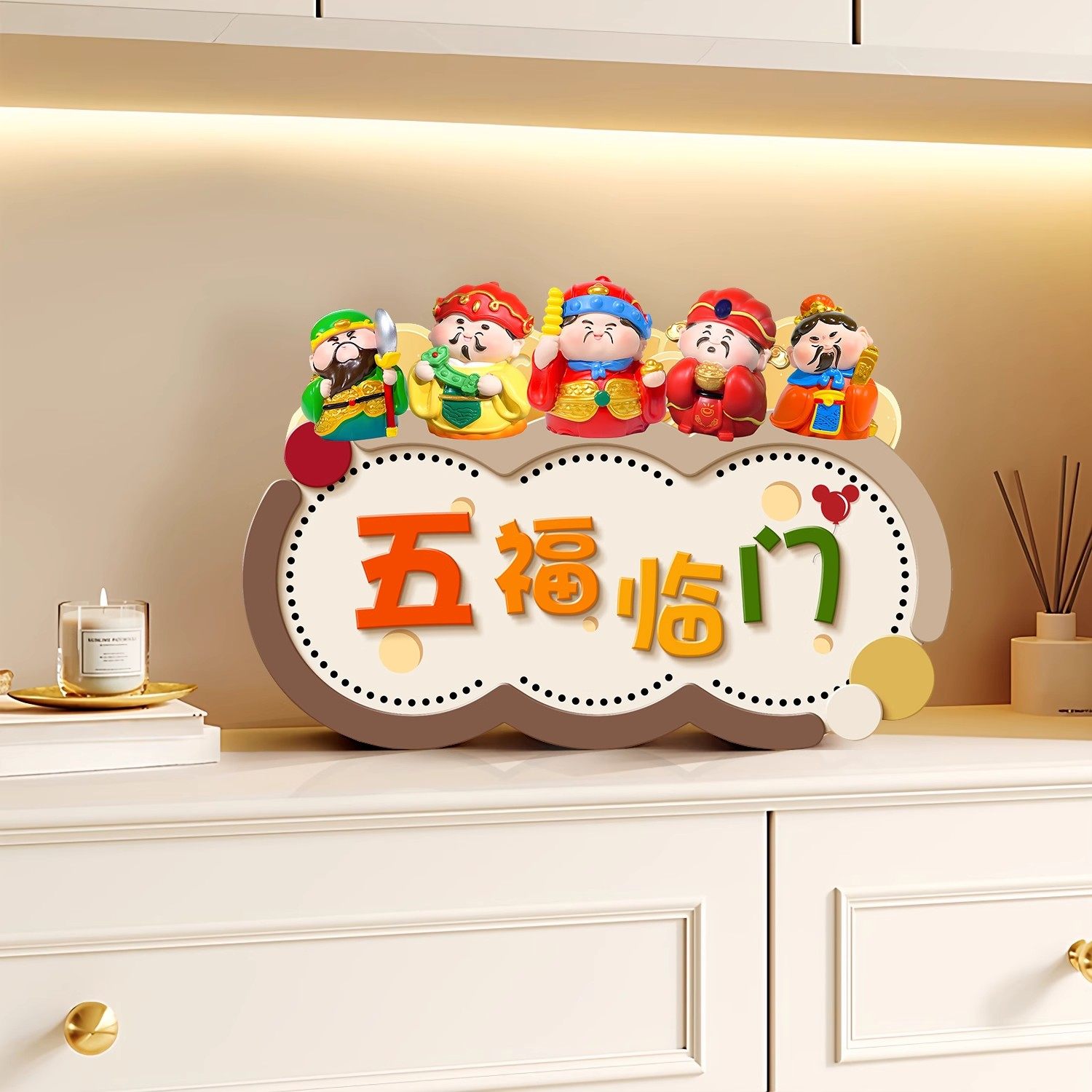 五路财神摆件入户玄关小摆台客厅桌面电视柜财神爷装饰品回家欢迎