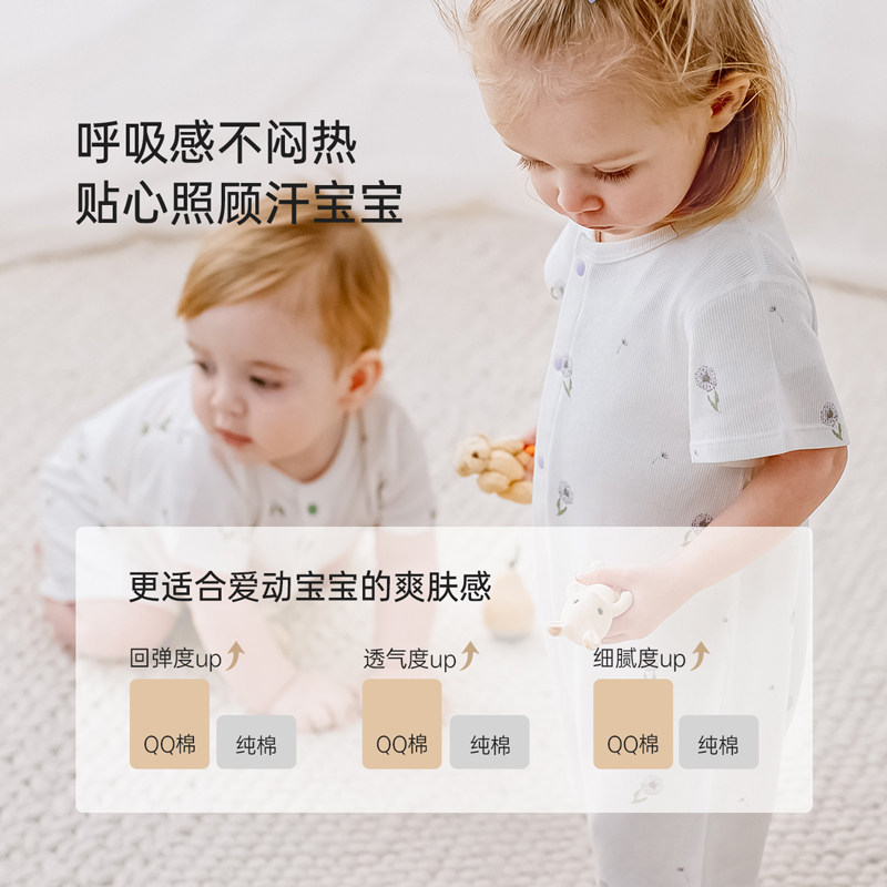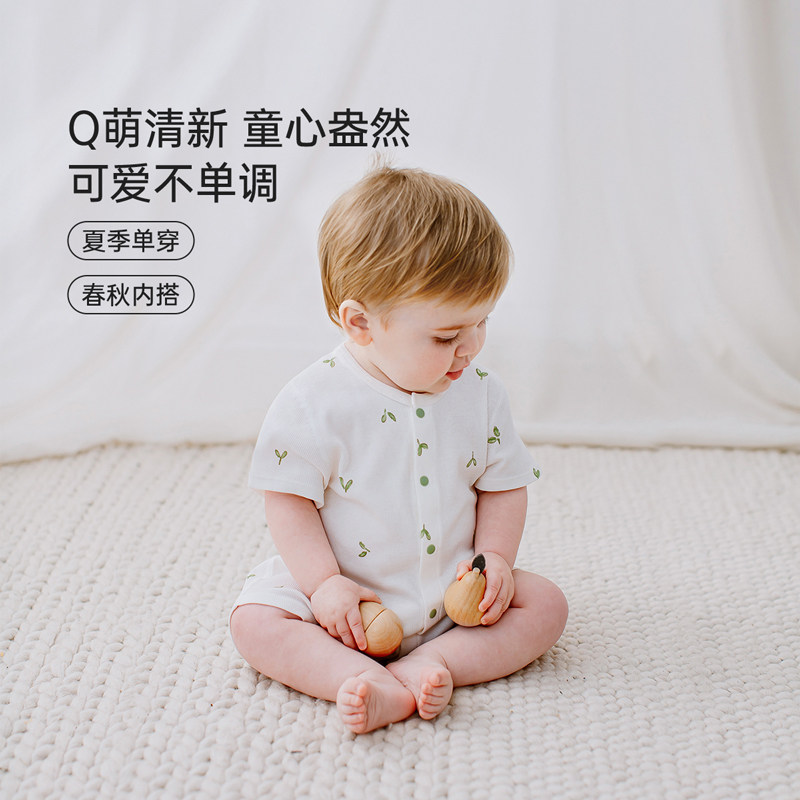 babylove婴儿连体衣夏季薄款哈衣短袖爬服莫代尔宝宝睡衣萌芽初露