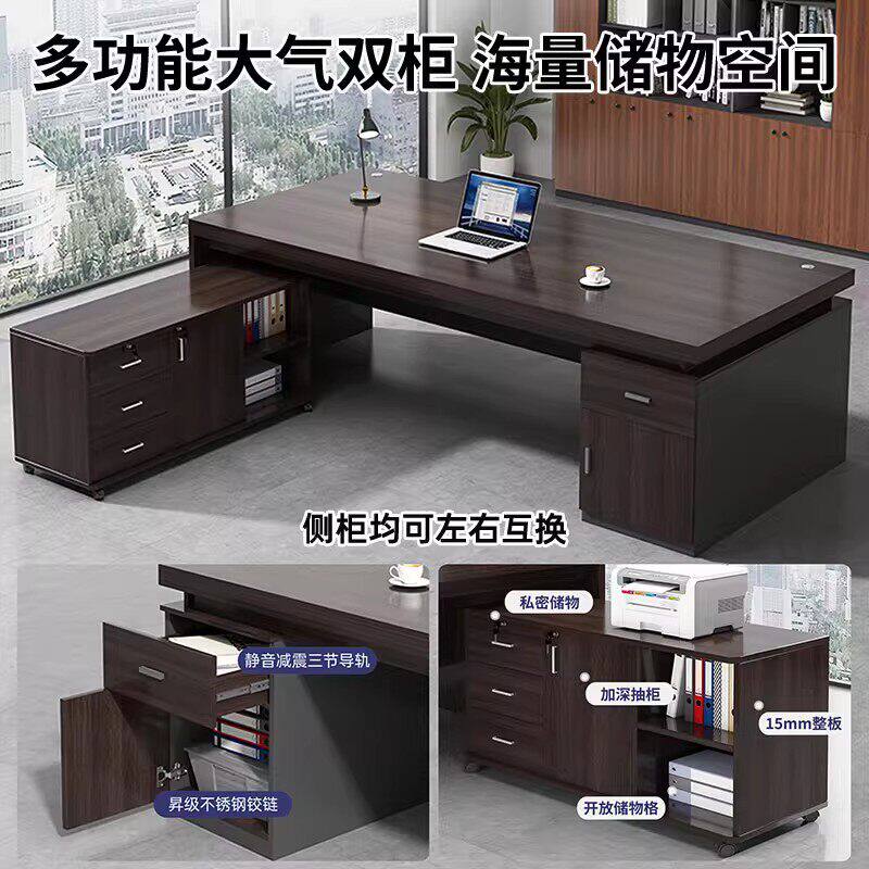 办公桌老板桌单人现代简约员工位办公室桌椅台式轻奢抽屉电脑桌子
