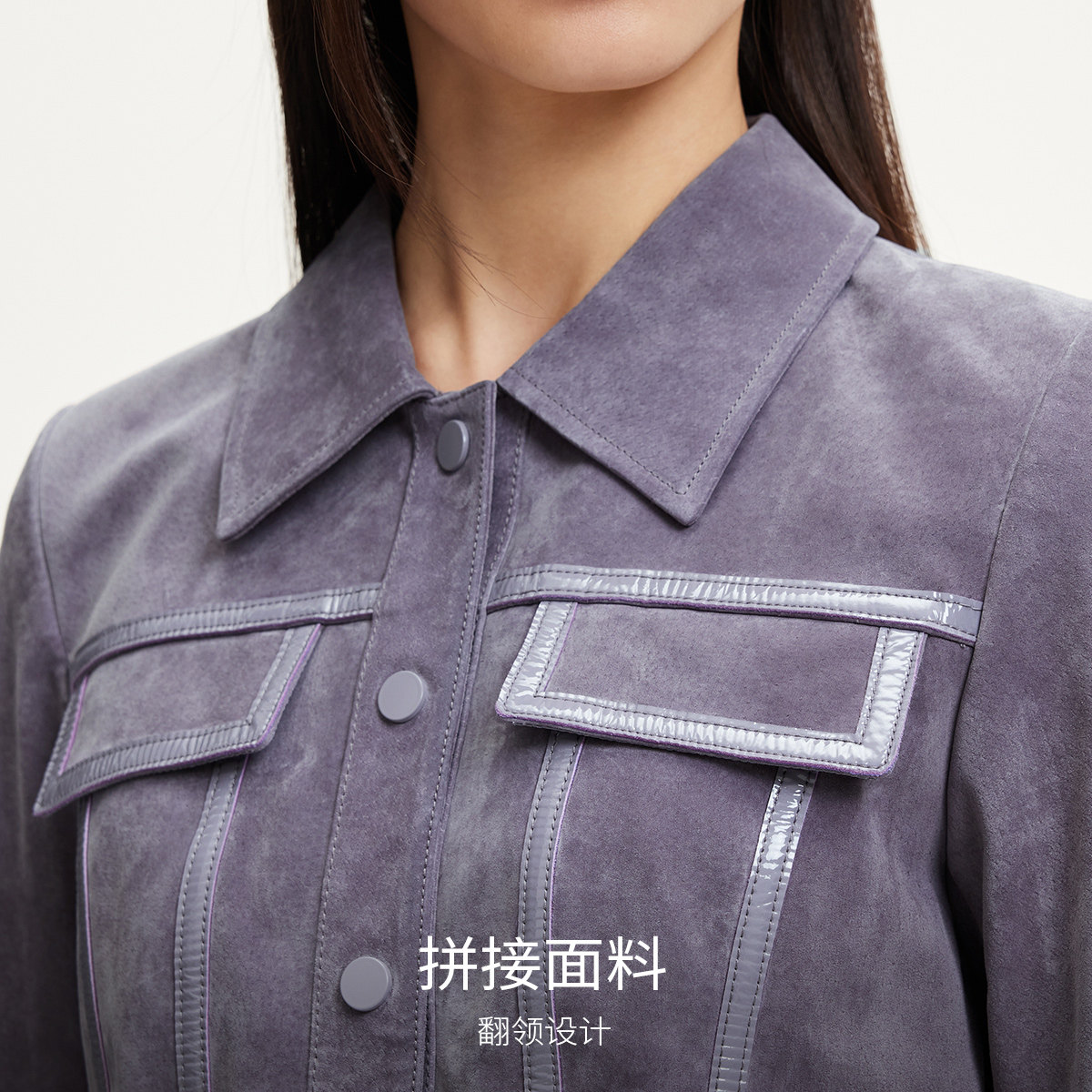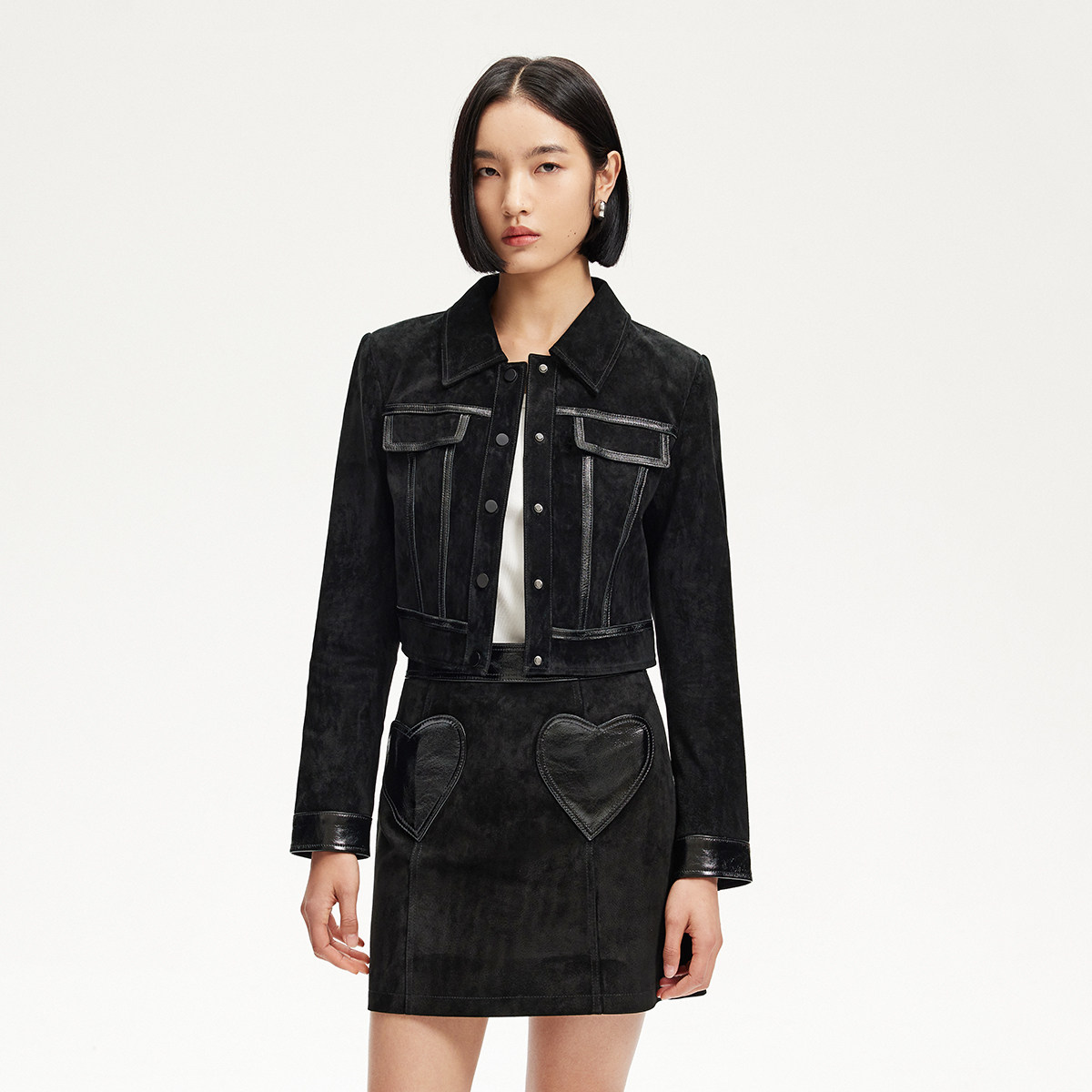 Vero Moda皮衣女2025夏季新款拼接面料短款皮衣325110002