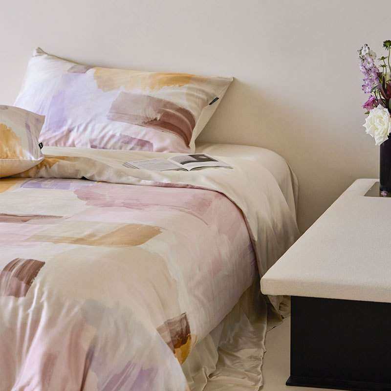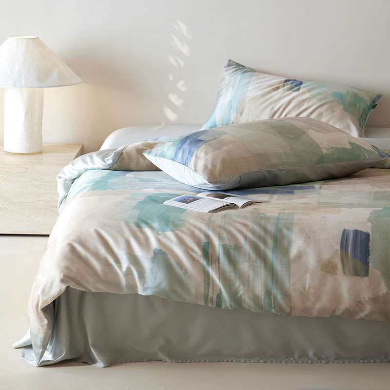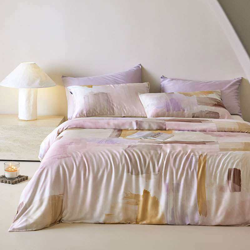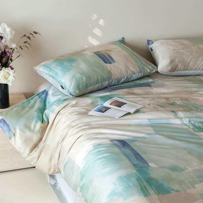 60支A类天丝数码印四件套夏季丝滑蓝粉被套纯色床单透气清凉床品