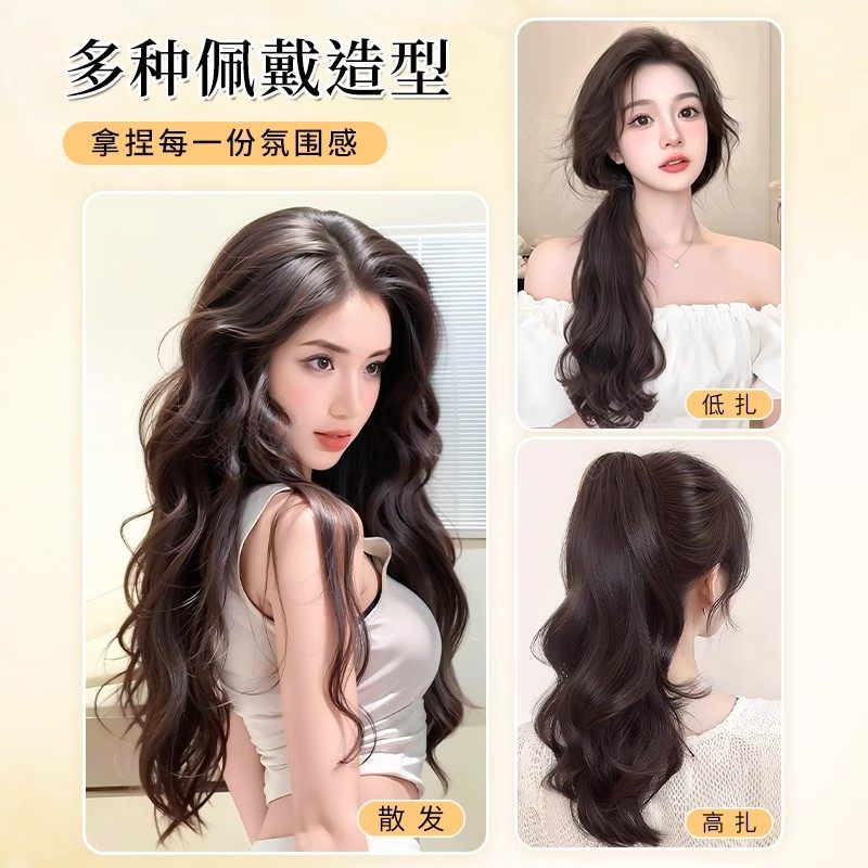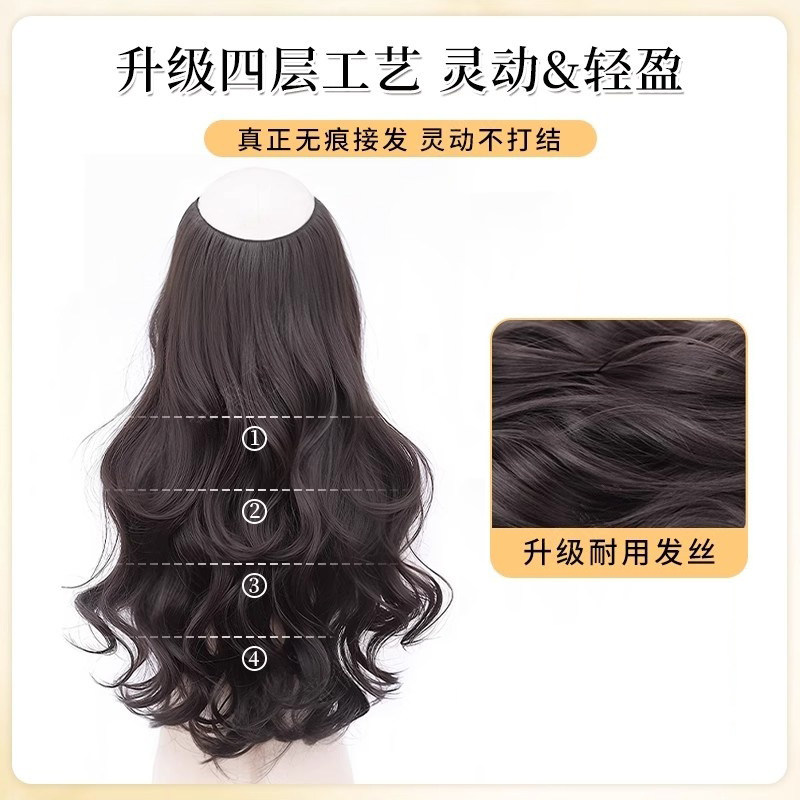 挂耳染发片卷发挑染假发片女一片式隐形彩色接发贴片蓬松漂染长发