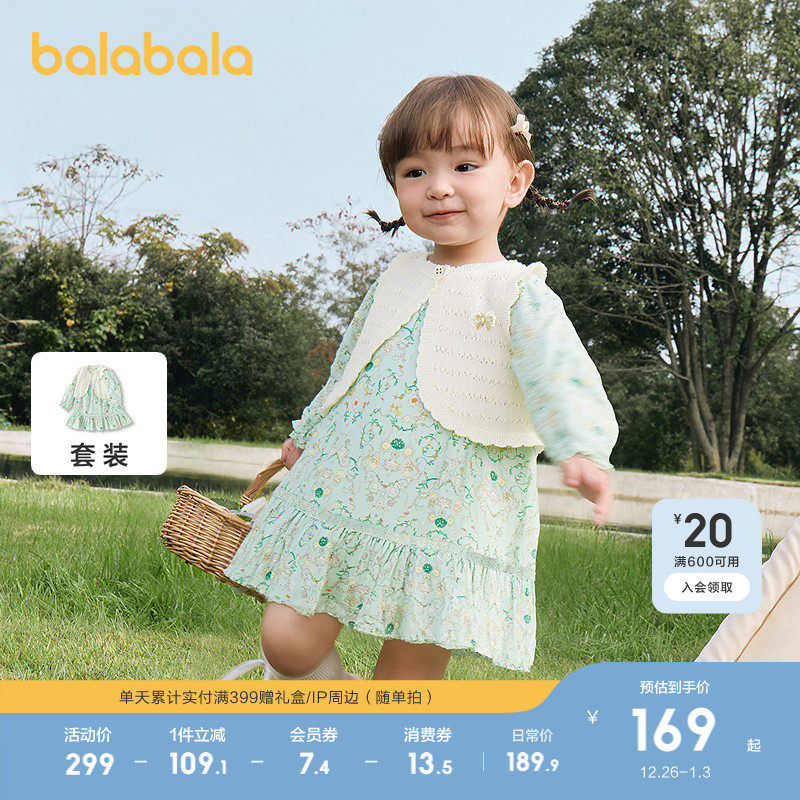 【商场同款】巴拉巴拉宝宝连衣裙子套装女童两件套2025新款秋装甜