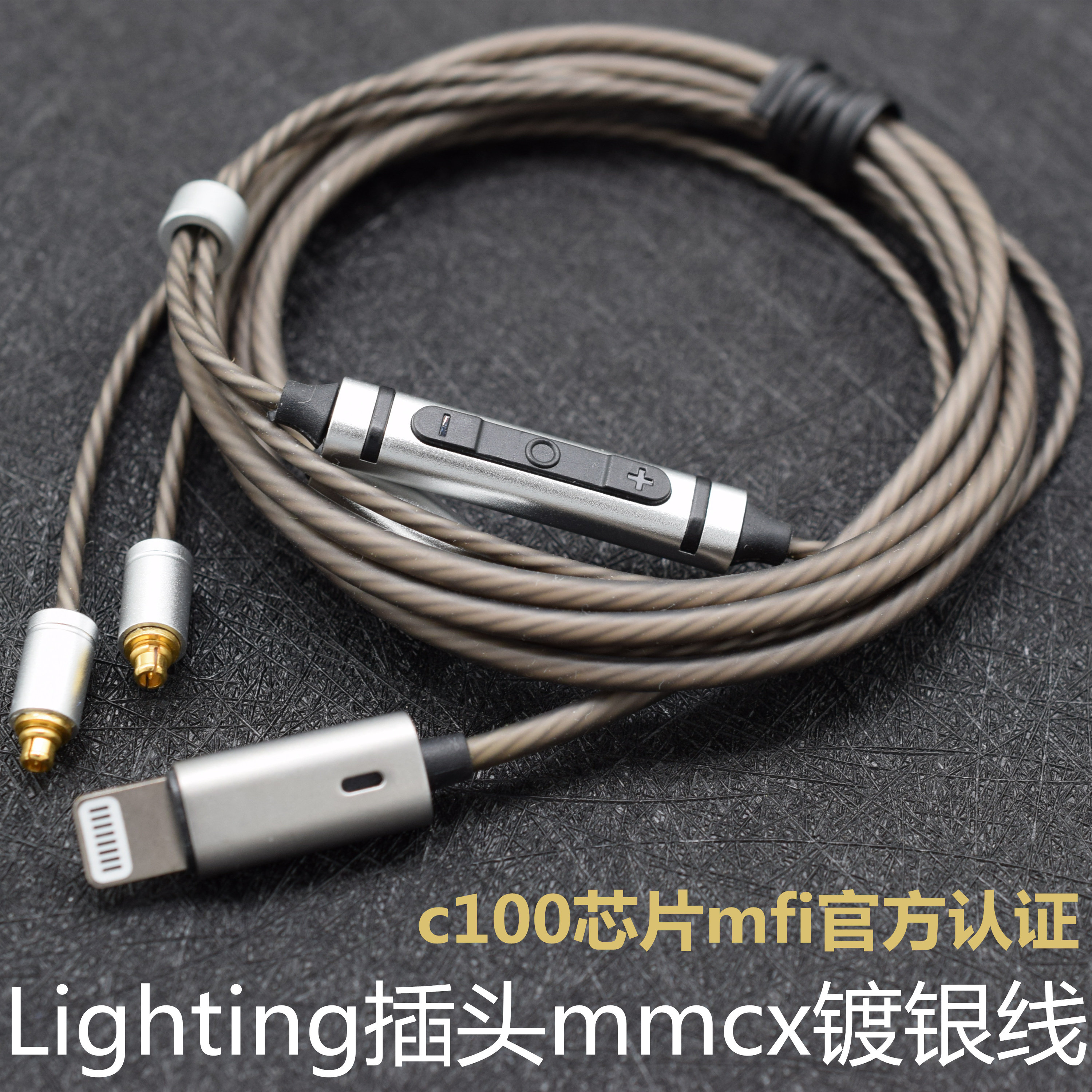 Lighting插头mmcx铜耳机线 c100麦克风线控 diy耳机升级线材