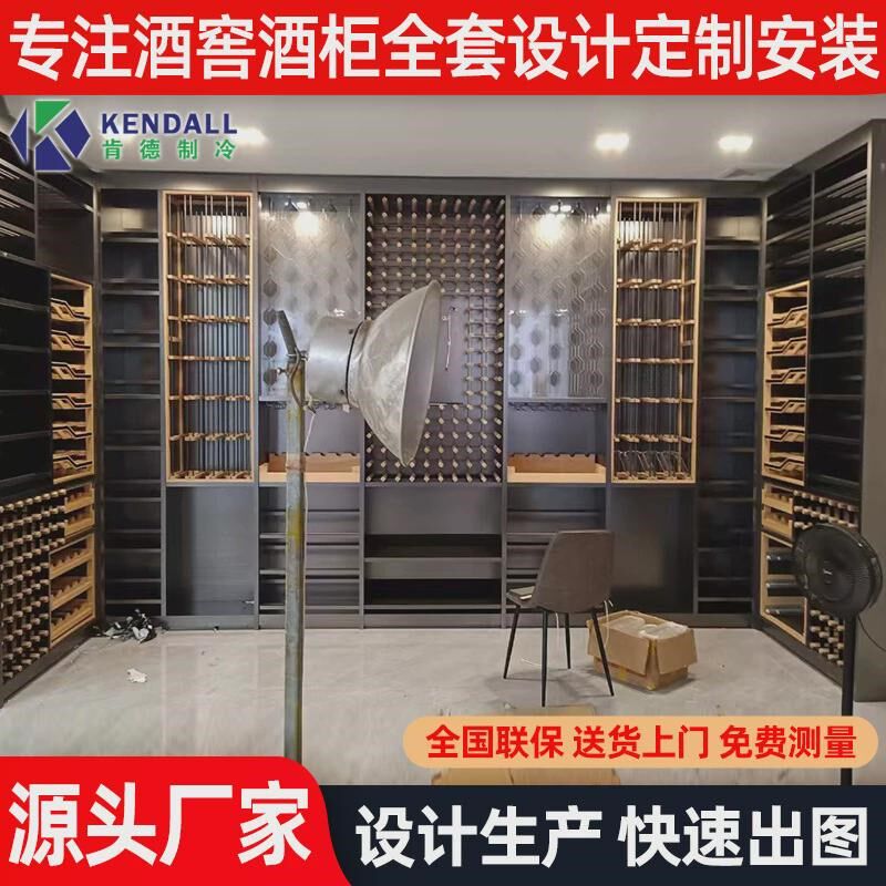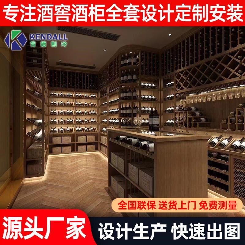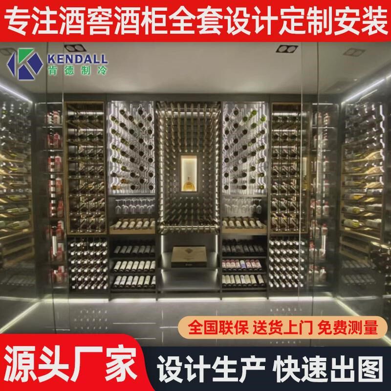 高档轻奢别墅地下k室酒窖酒庄不锈钢恒温酒柜实木橡木红酒柜会所