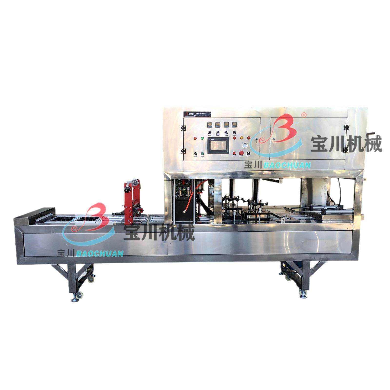全自动连续餐盒封口机 周黑鸭煌上煌鸭脖卤味气调锁鲜包装机