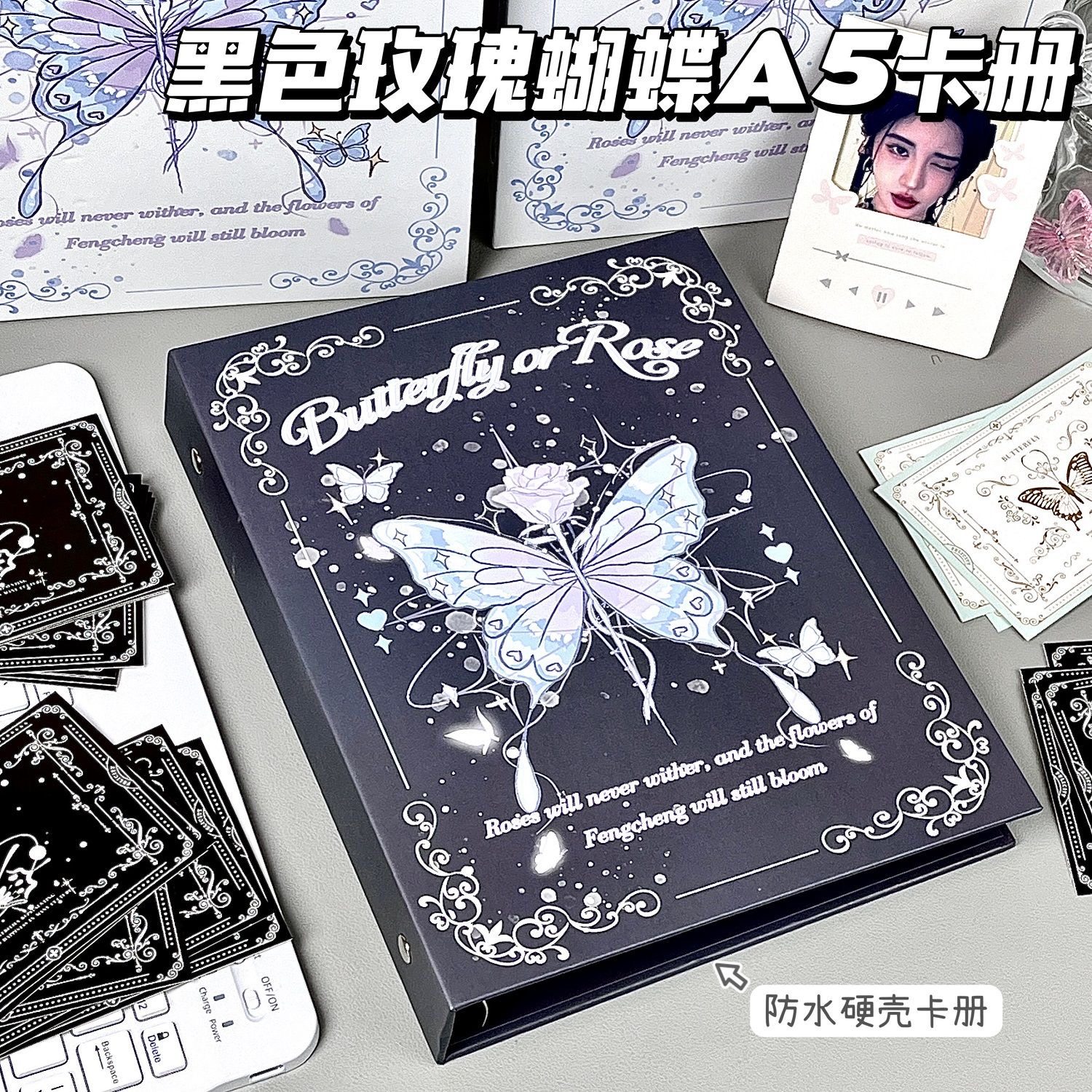 高颜值超硬A5外壳追星卡收纳册绝美蝴蝶玫瑰ins卡册活页四宫格
