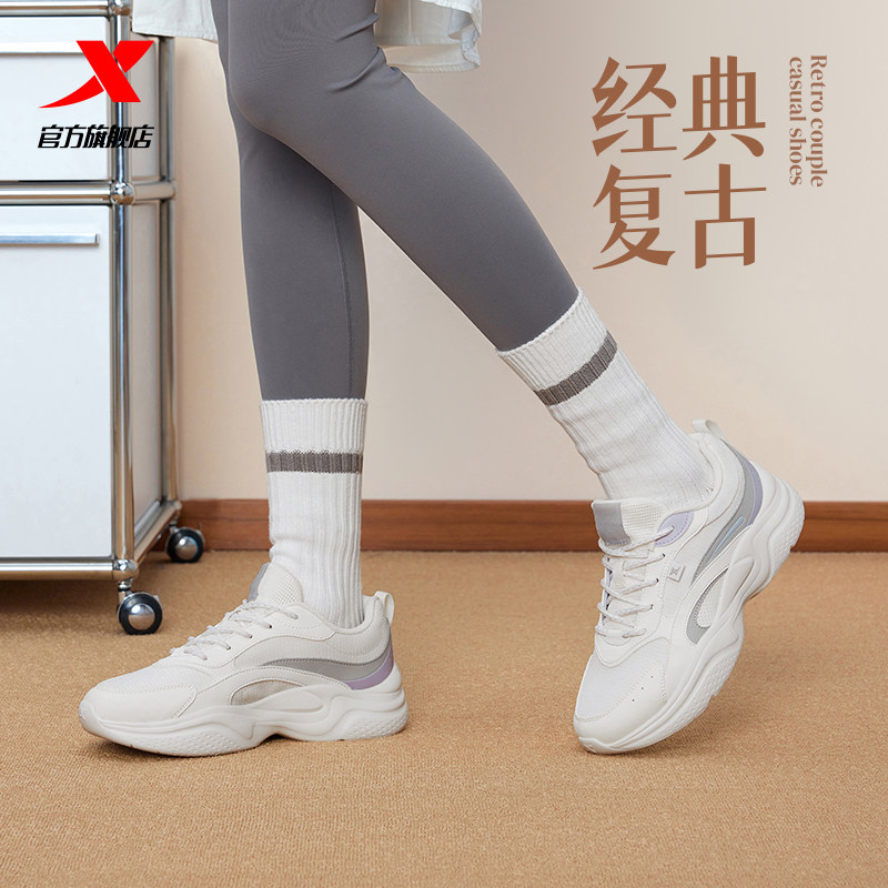 特步轻春休闲鞋女鞋正品新年情侣款复古厚底旅游鞋轻便运动鞋子男
