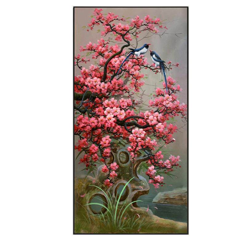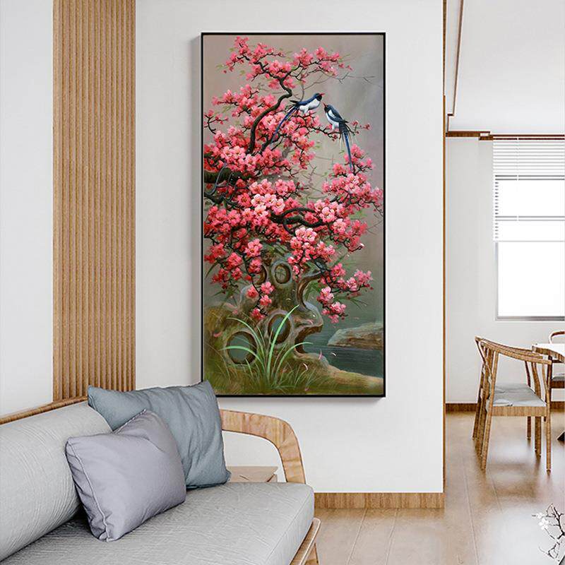 喜上眉梢玄关十字绣2023年新款花鸟图手工线绣走廊喜鹊花卉自己绣