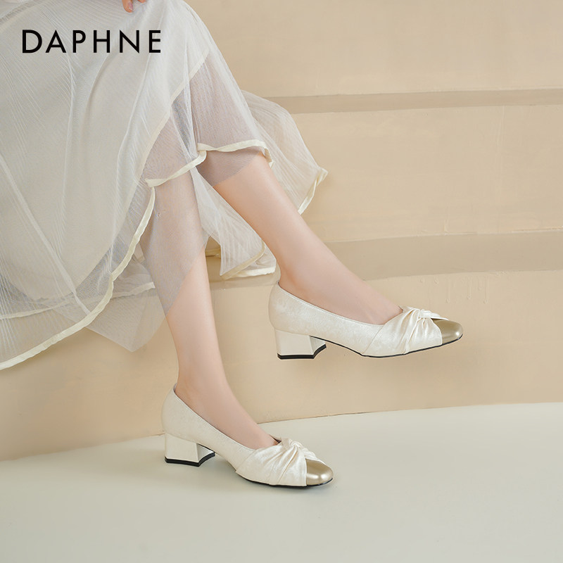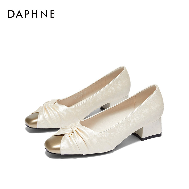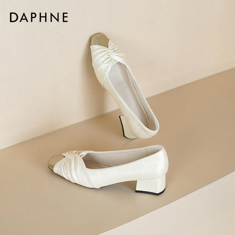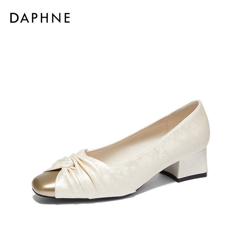 达芙妮方头浅口单鞋女2026新款春季豆豆鞋女通勤风软底妈妈鞋子女