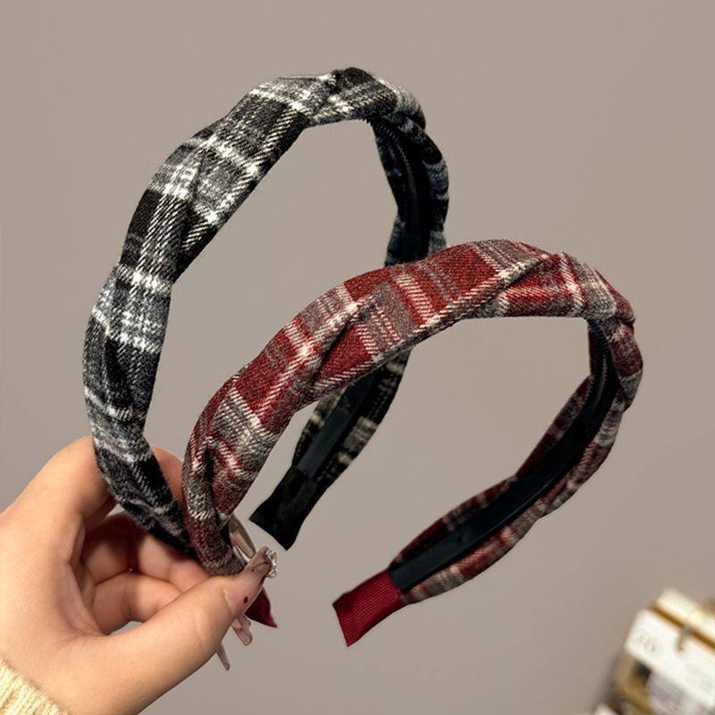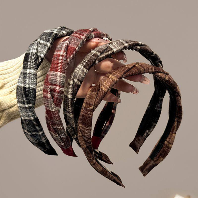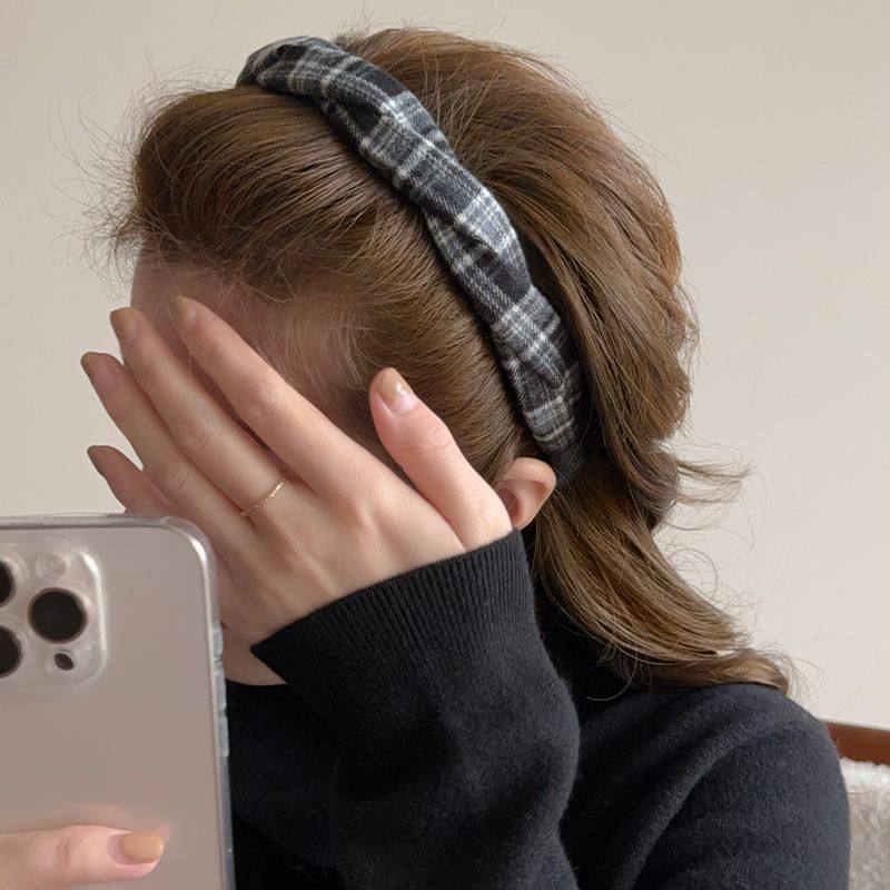 格纹麻花发箍女2025新款高级感发卡高颅顶洗脸压发头箍时尚头饰冬