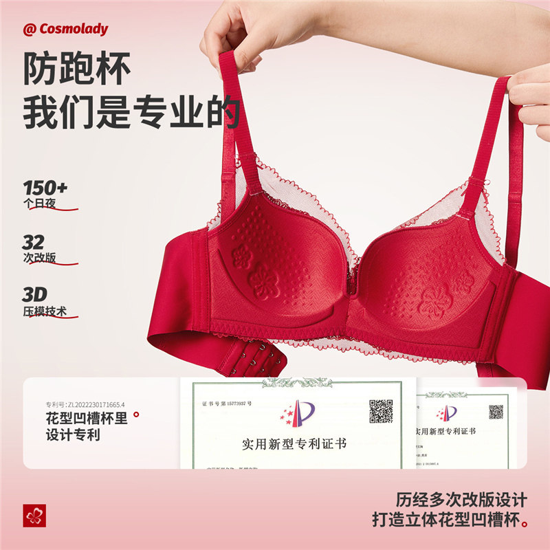 猫人本命年小胸聚拢红色内衣新款无痕显大结婚新娘文胸罩内裤套装