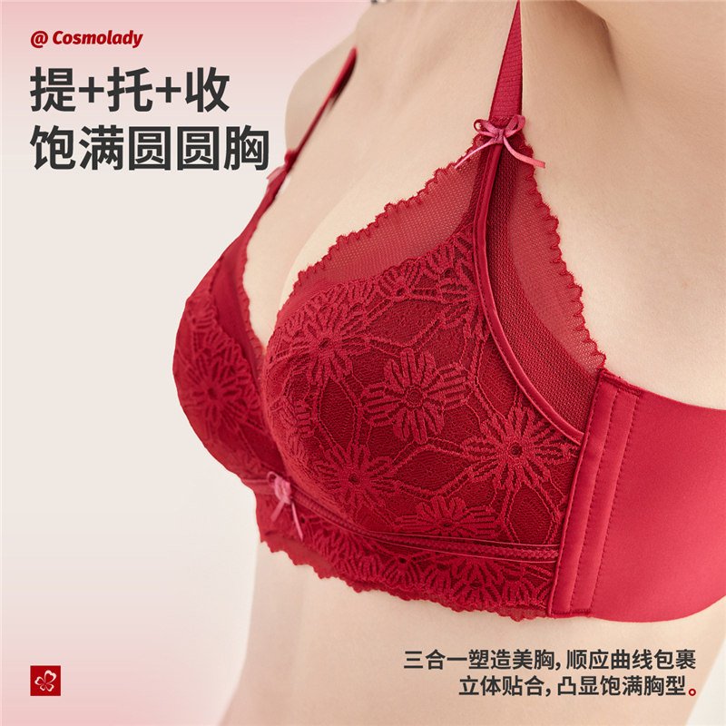 都市丽人结婚红色内衣女新娘套装本命年红色文胸胸罩蕾丝聚拢礼盒