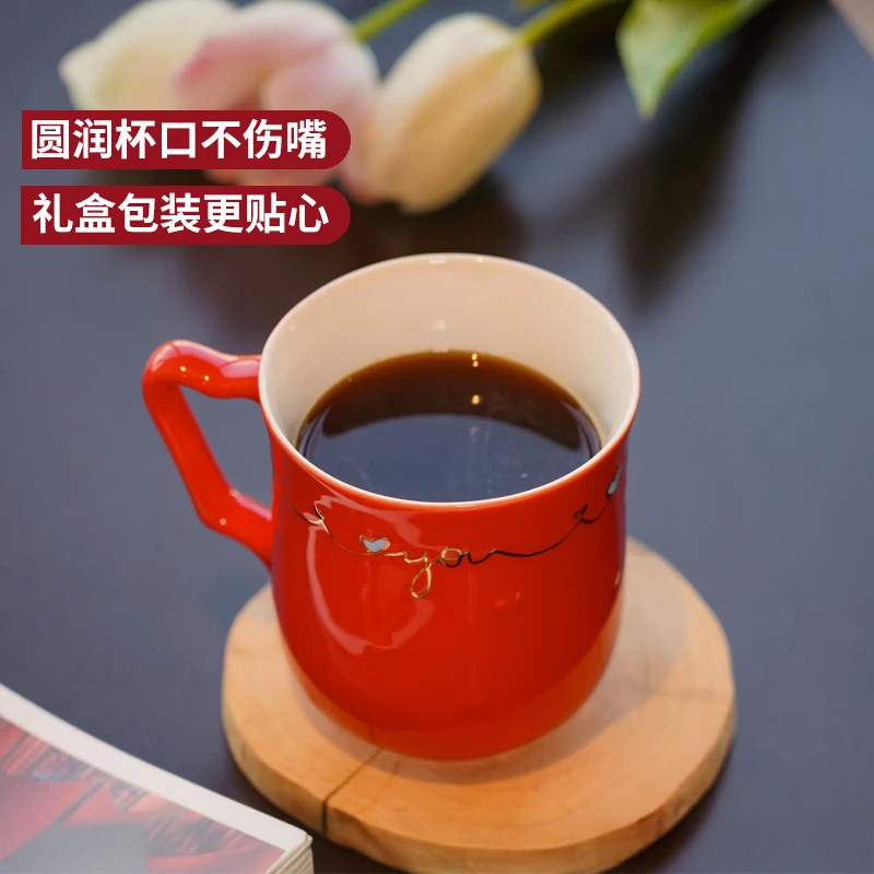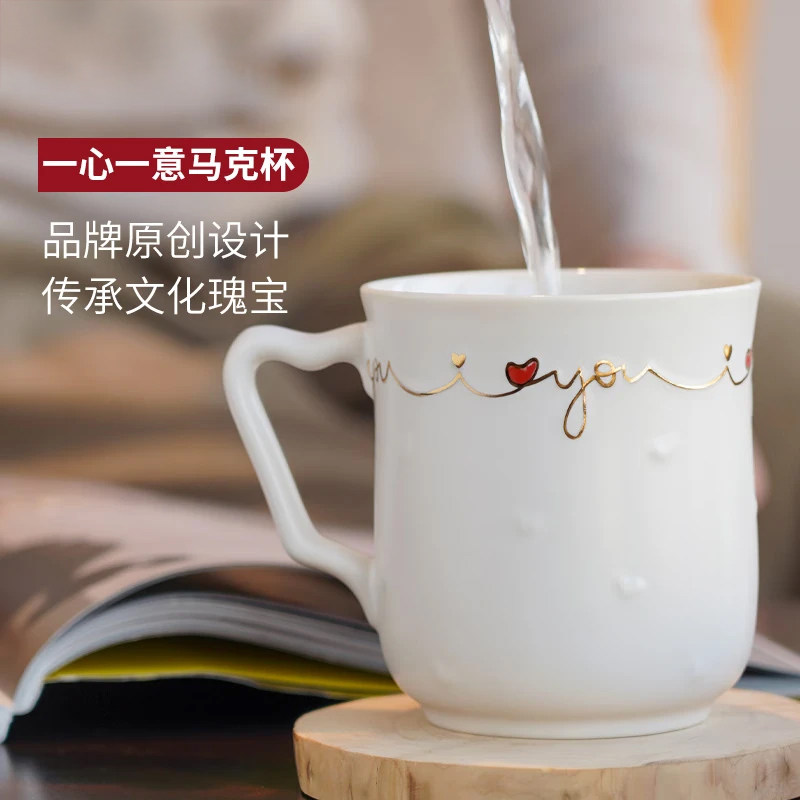 【马年礼物】乾唐轩活瓷一心一意马克杯茶杯水杯陶瓷杯生日送人女